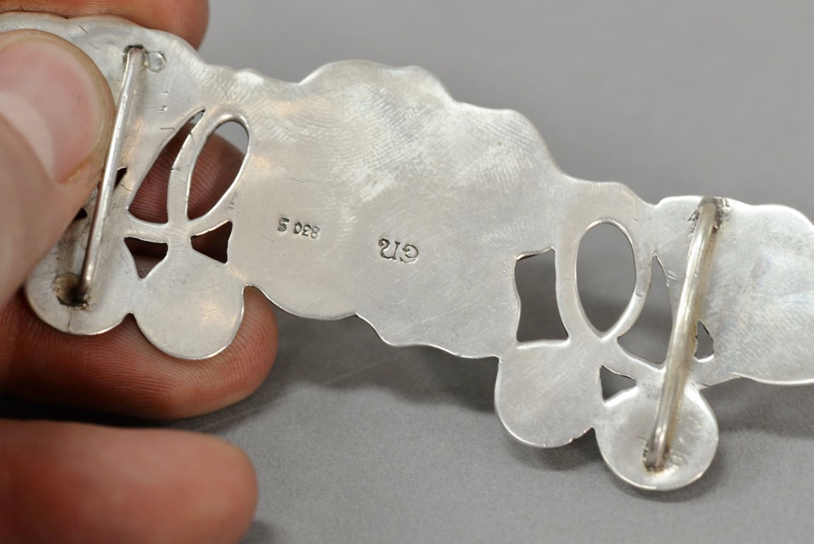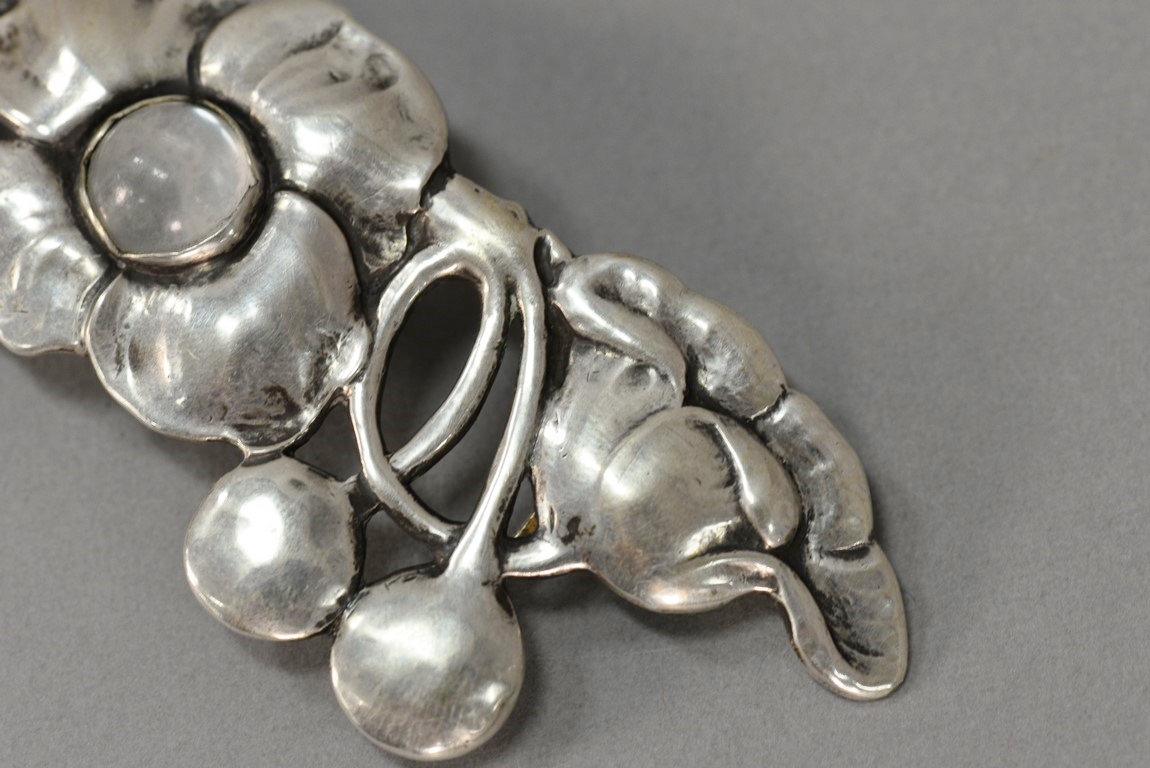Evald Nielsen sterling silver Art Nouveau belt buckle with moon stone.