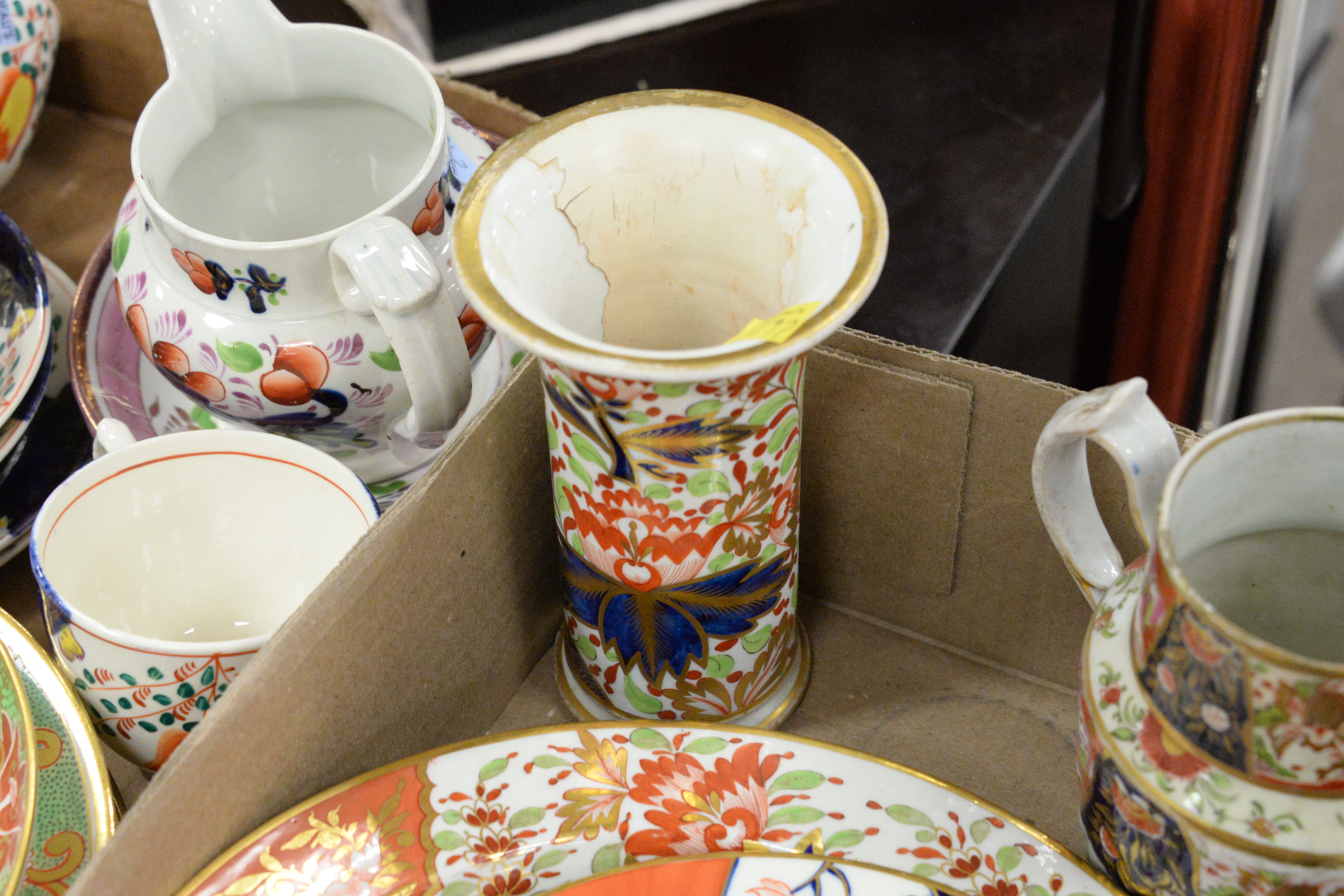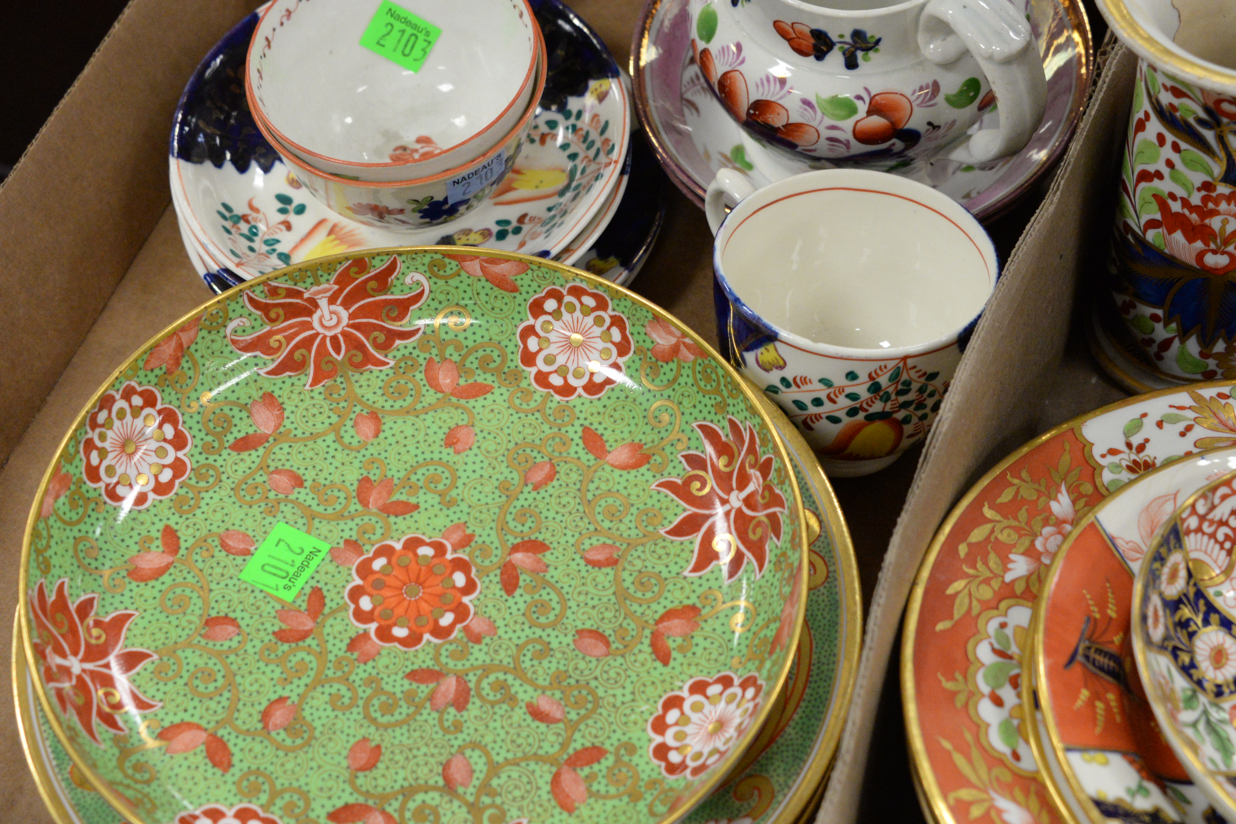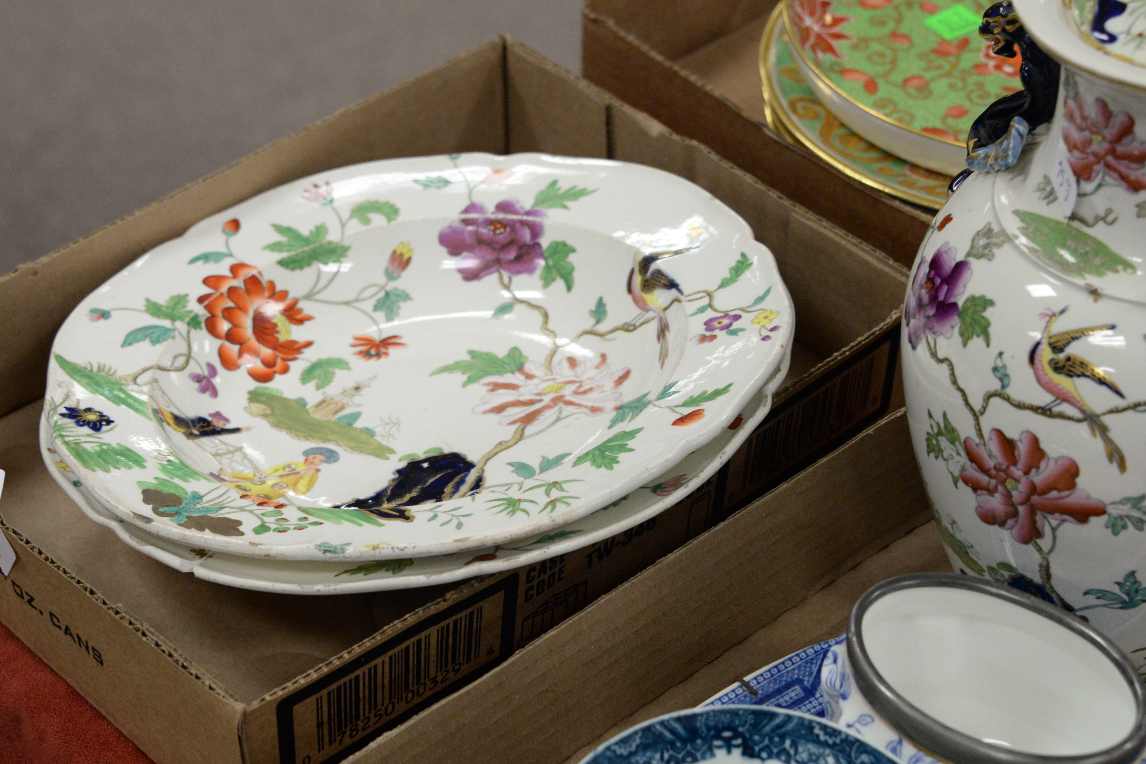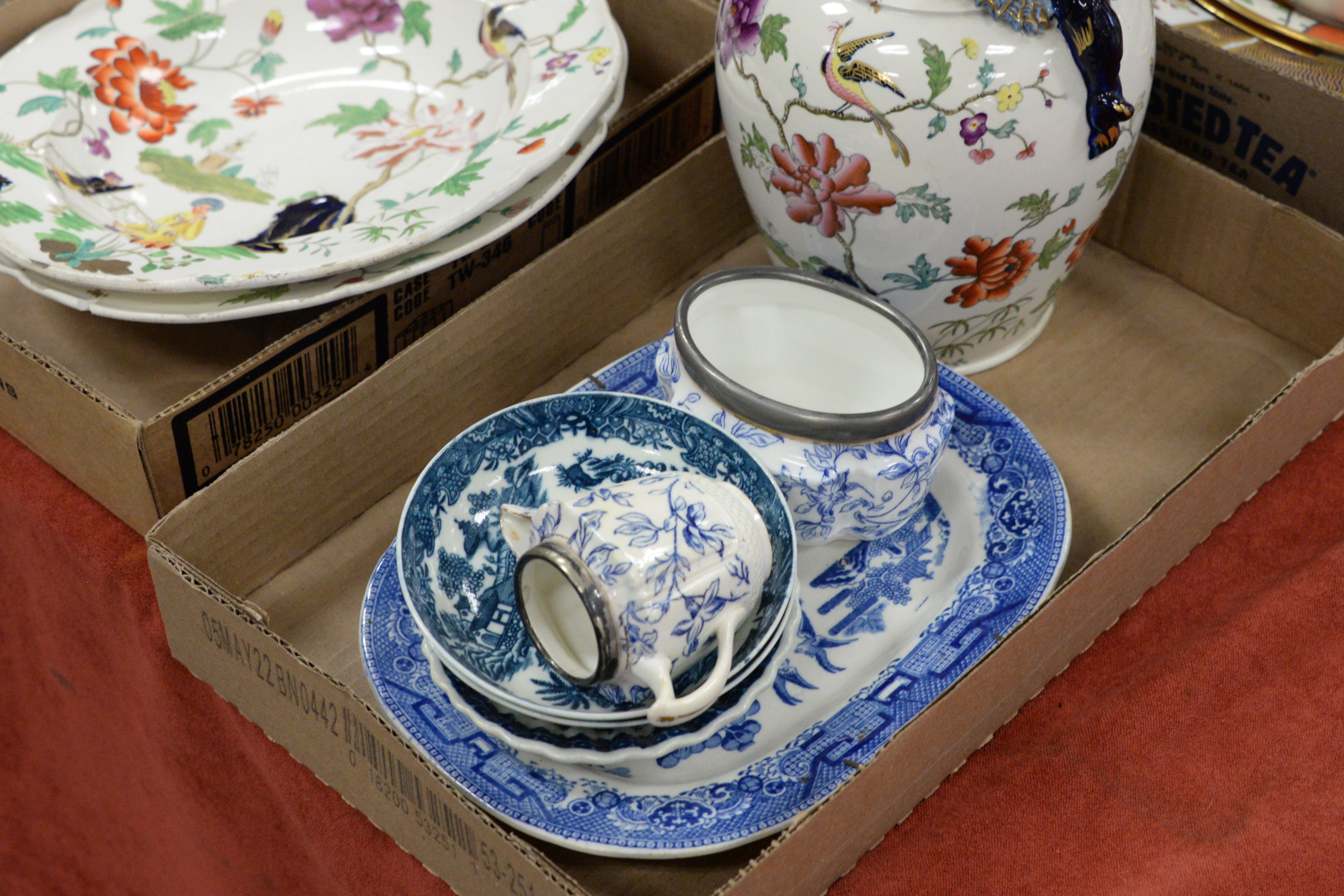 Four Box lots of English Porcelain, to Include, eight pieces of Dutch luster, teacups, creamer, saucers, “Chamberlain” small pitcher 6 inches height, small trumpet vase height 5 1/2 inches, dish 5 1/2 in diameter, two 7 inch diameter dishes, two 9 1/2 diameter soups