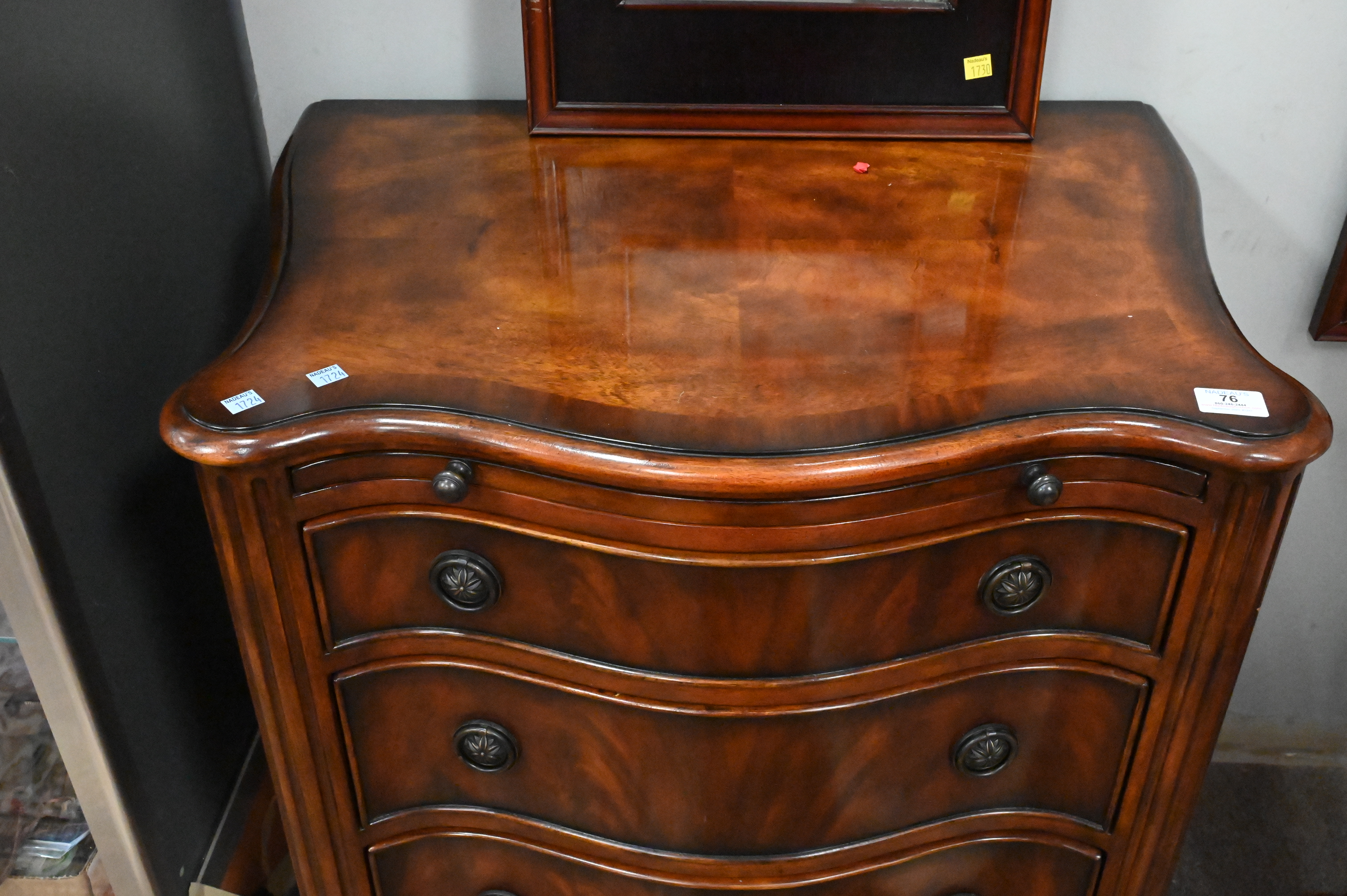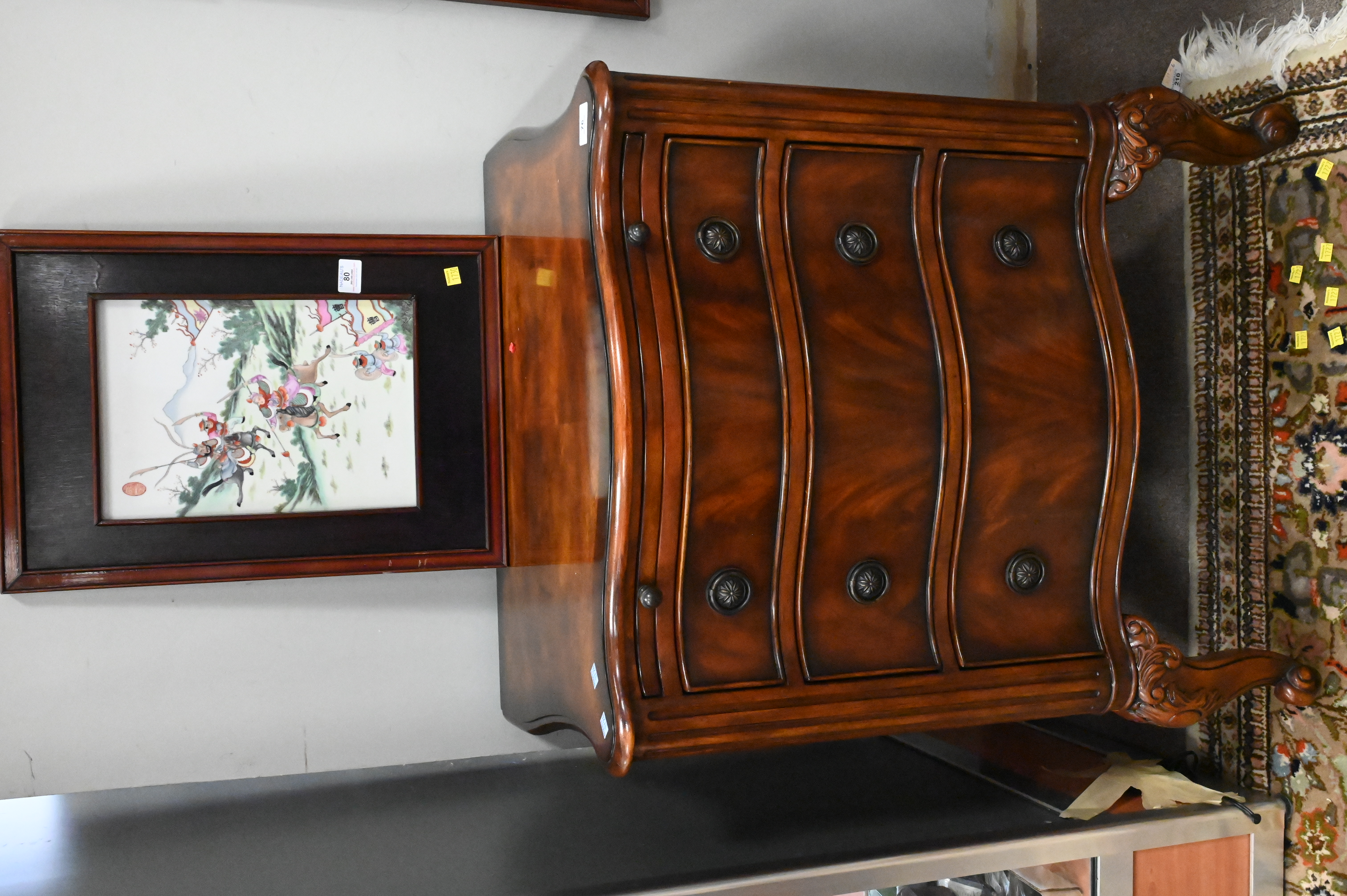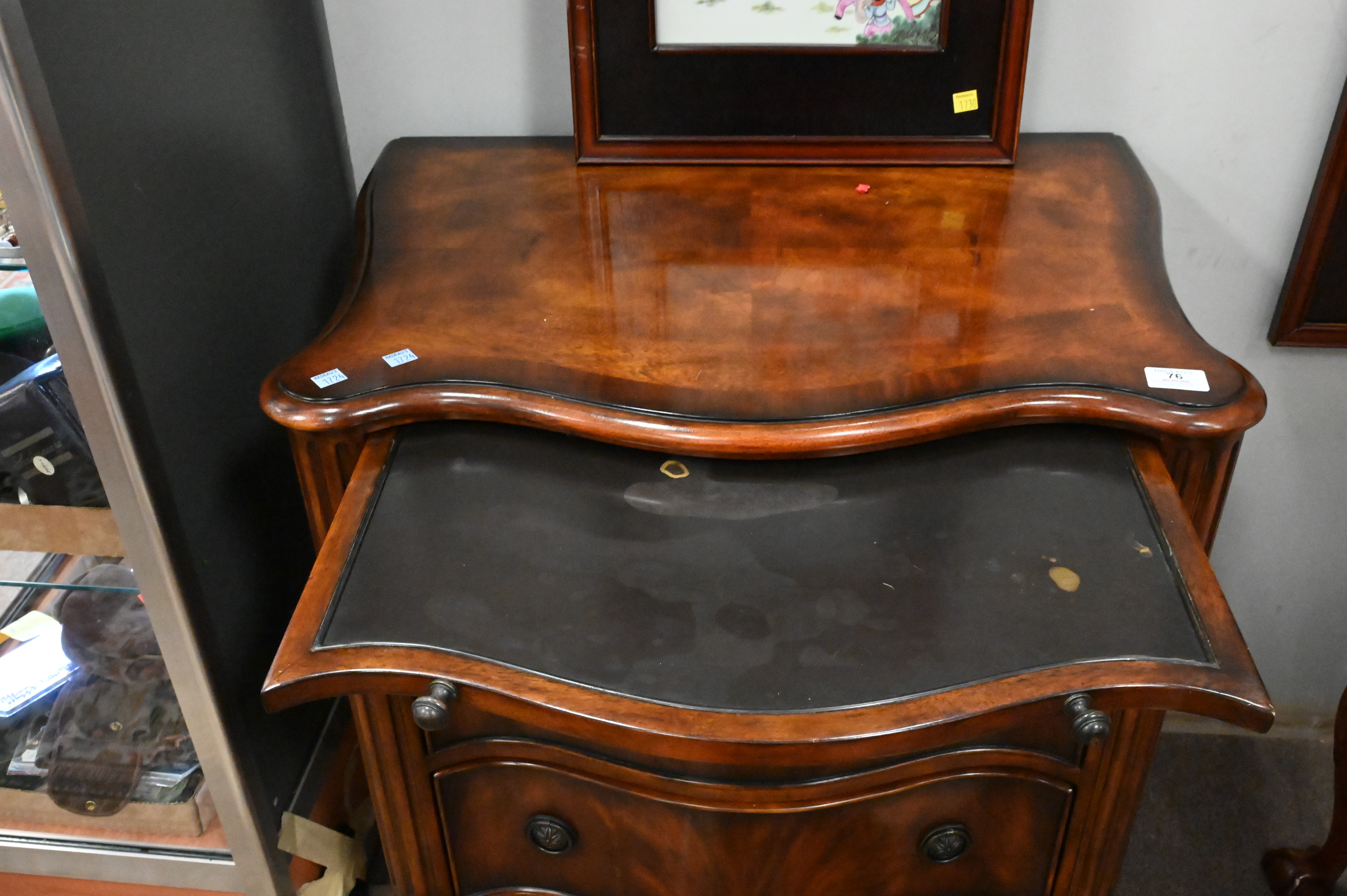 Hickory and White Mahogany Serpentine Diminutive Chest, having a pull out, height 33 inches, top 19″ x 27″