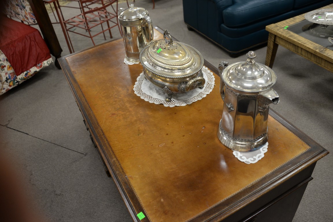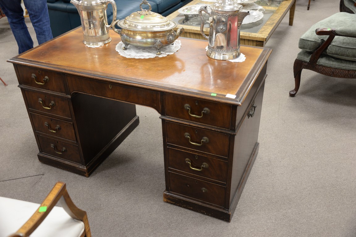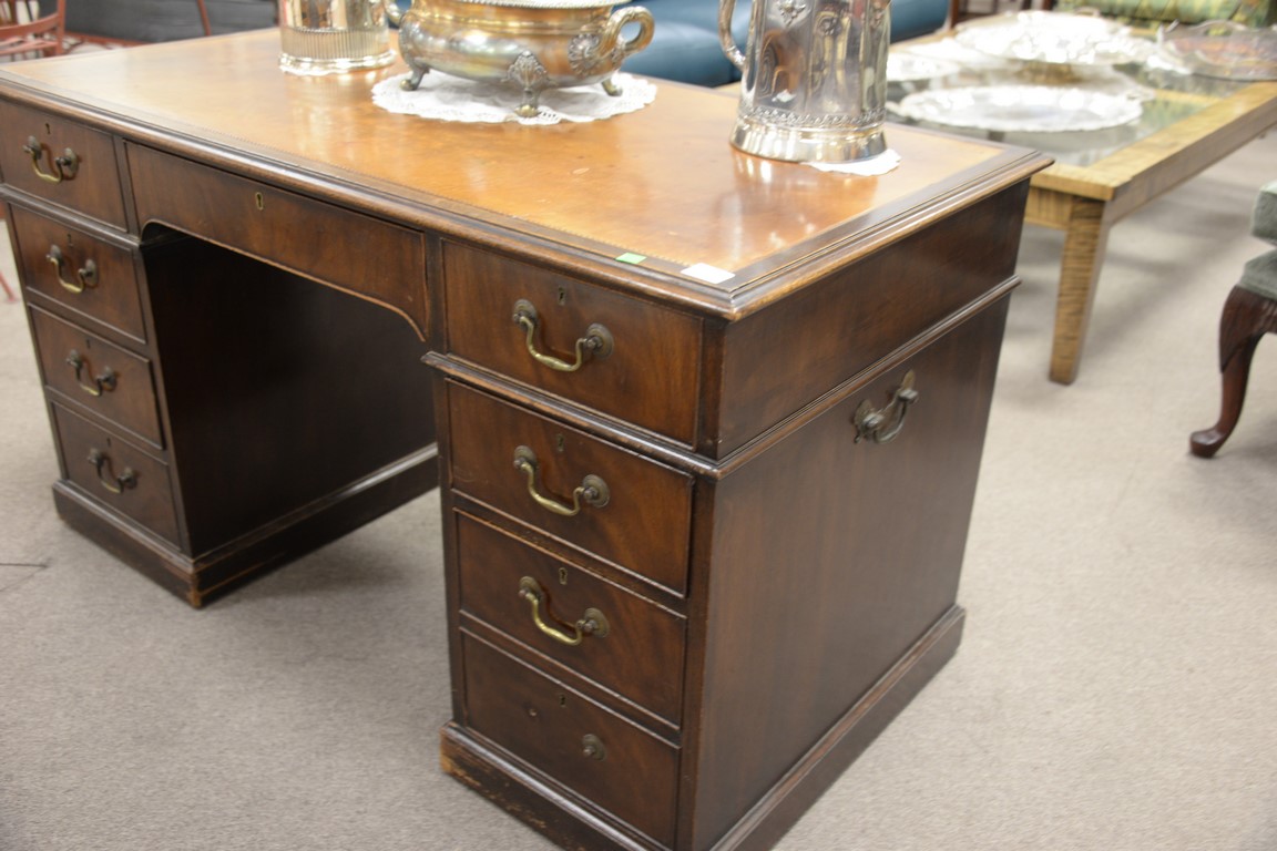 Mahogany leather top desk. ht. 29in., top: 26 x 50