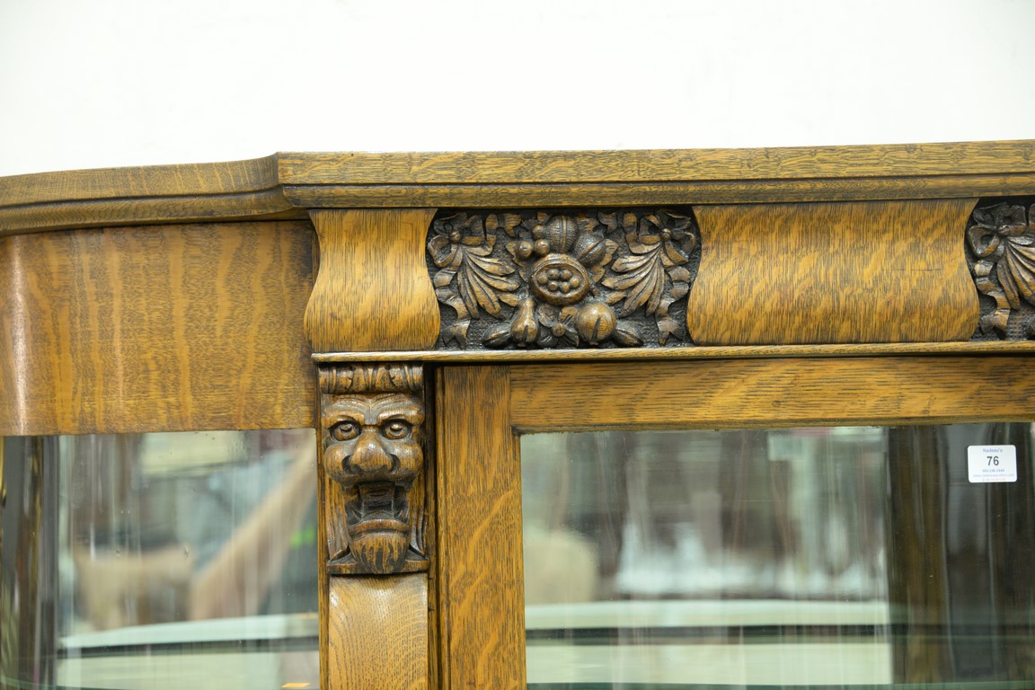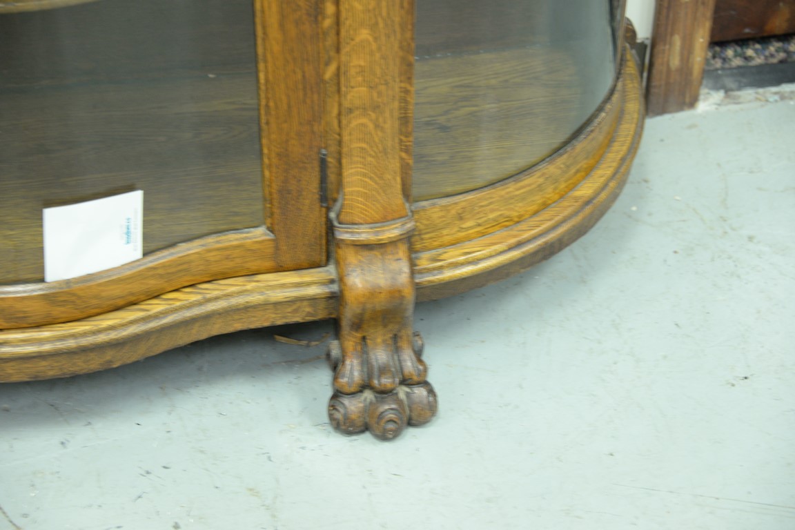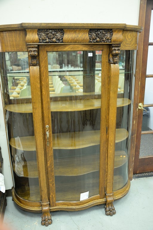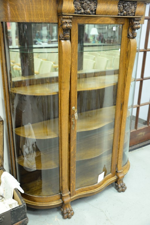 Oak Victorian china cabinet with serpentine door and bowed sides. ht. 69 in. wd. 53 in.