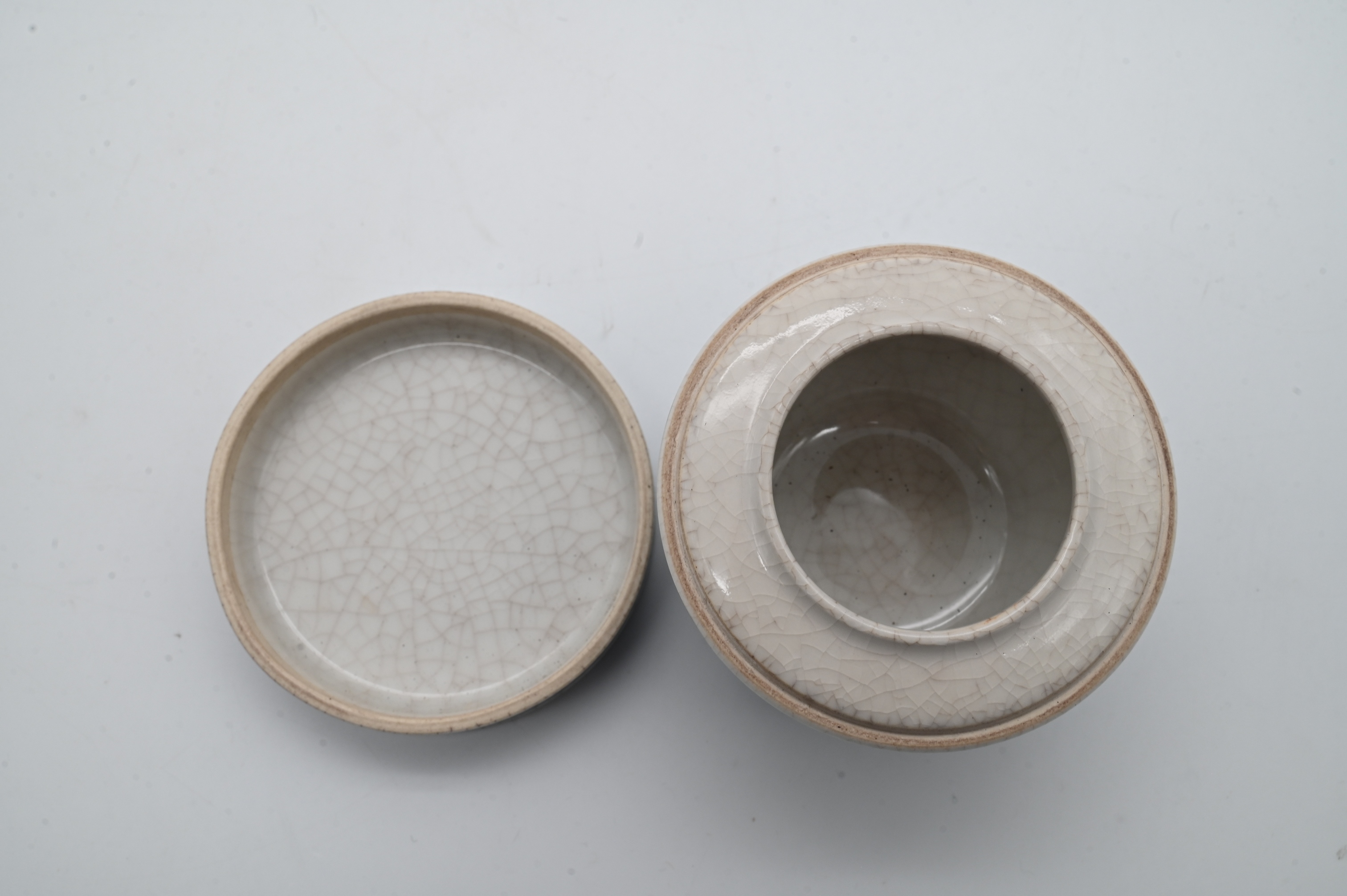 Lot 76: Pair of Chinese Kangxi Style Celadon Saucers and Covered Pot