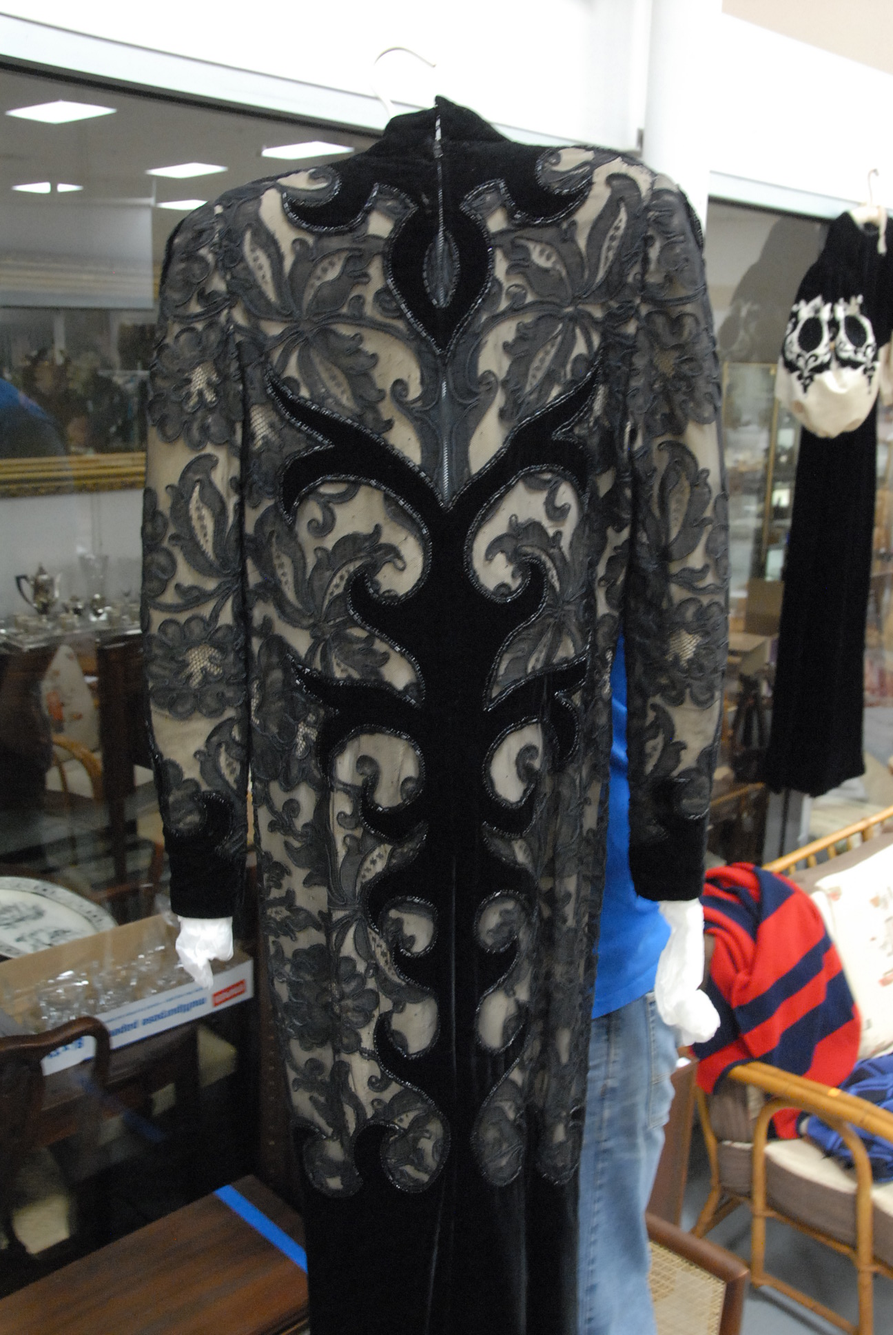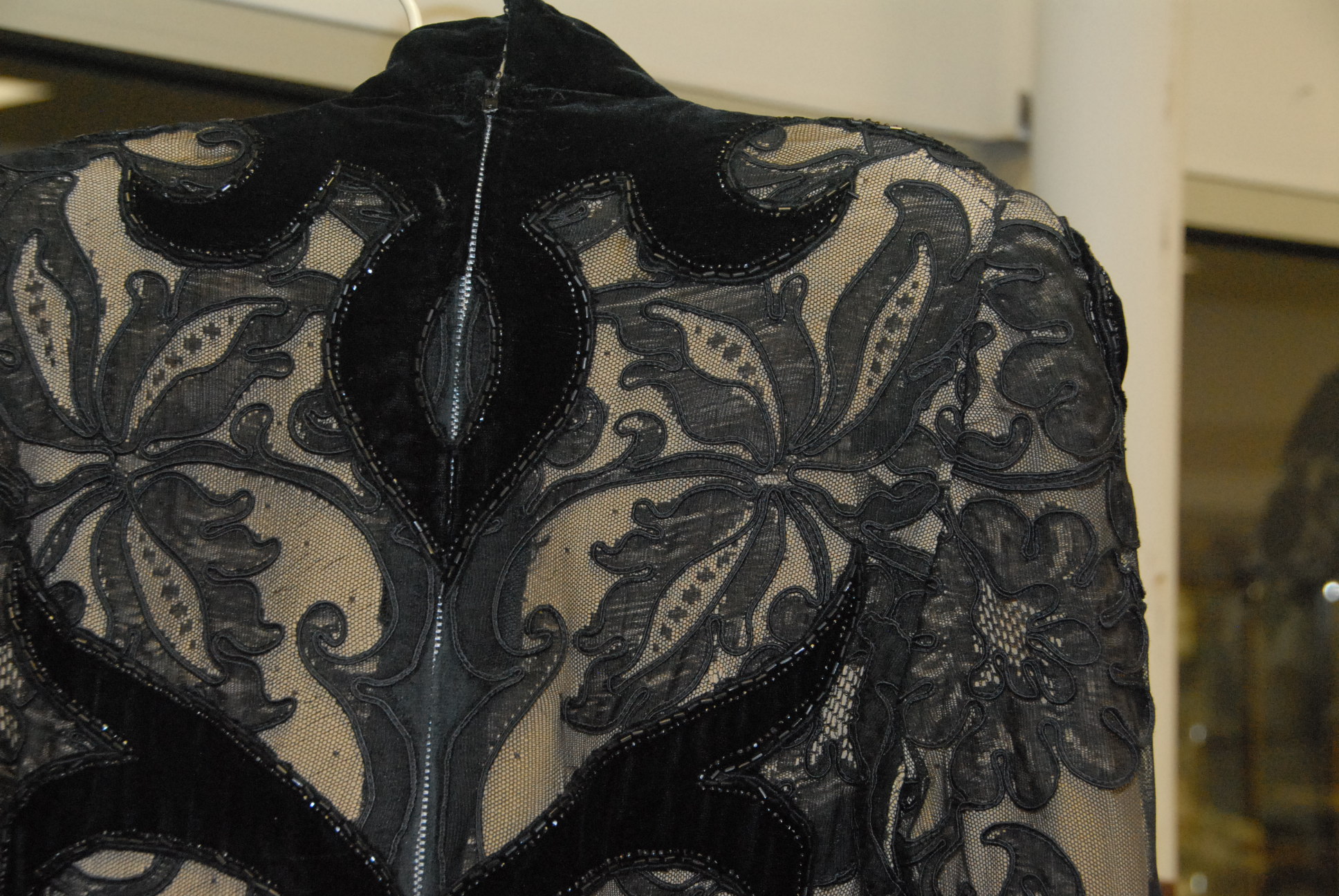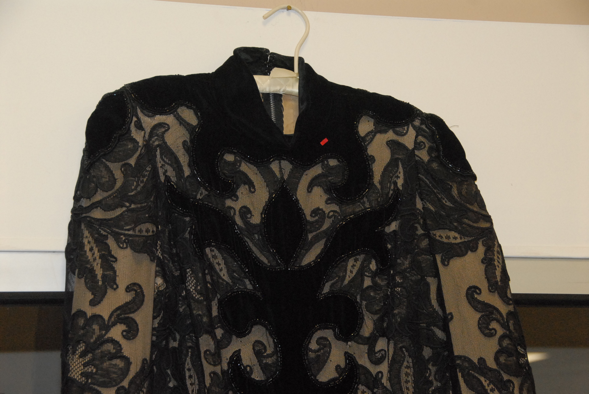 Pierre Balmain lace and beadwork black dress with velvet bottom.