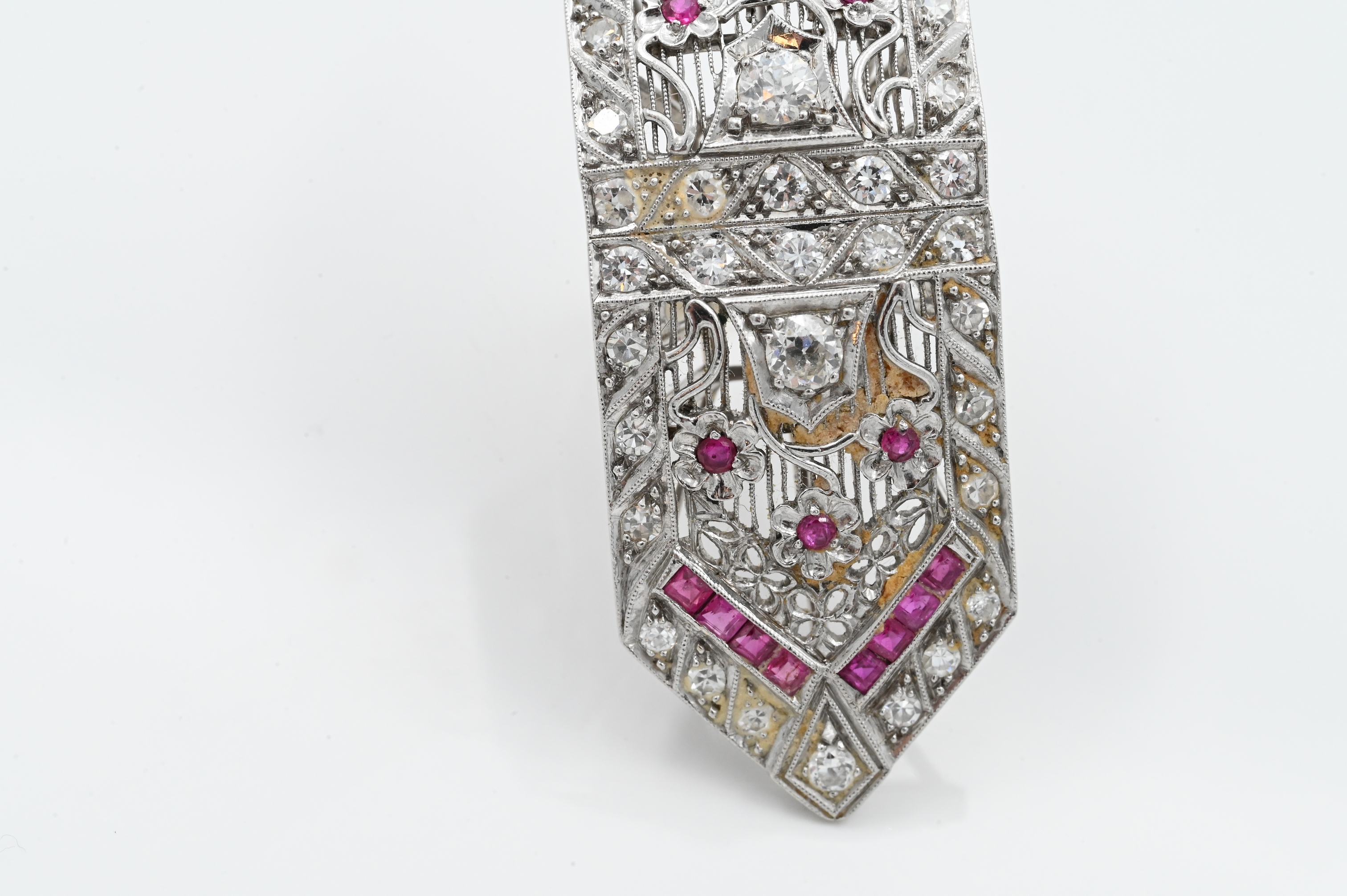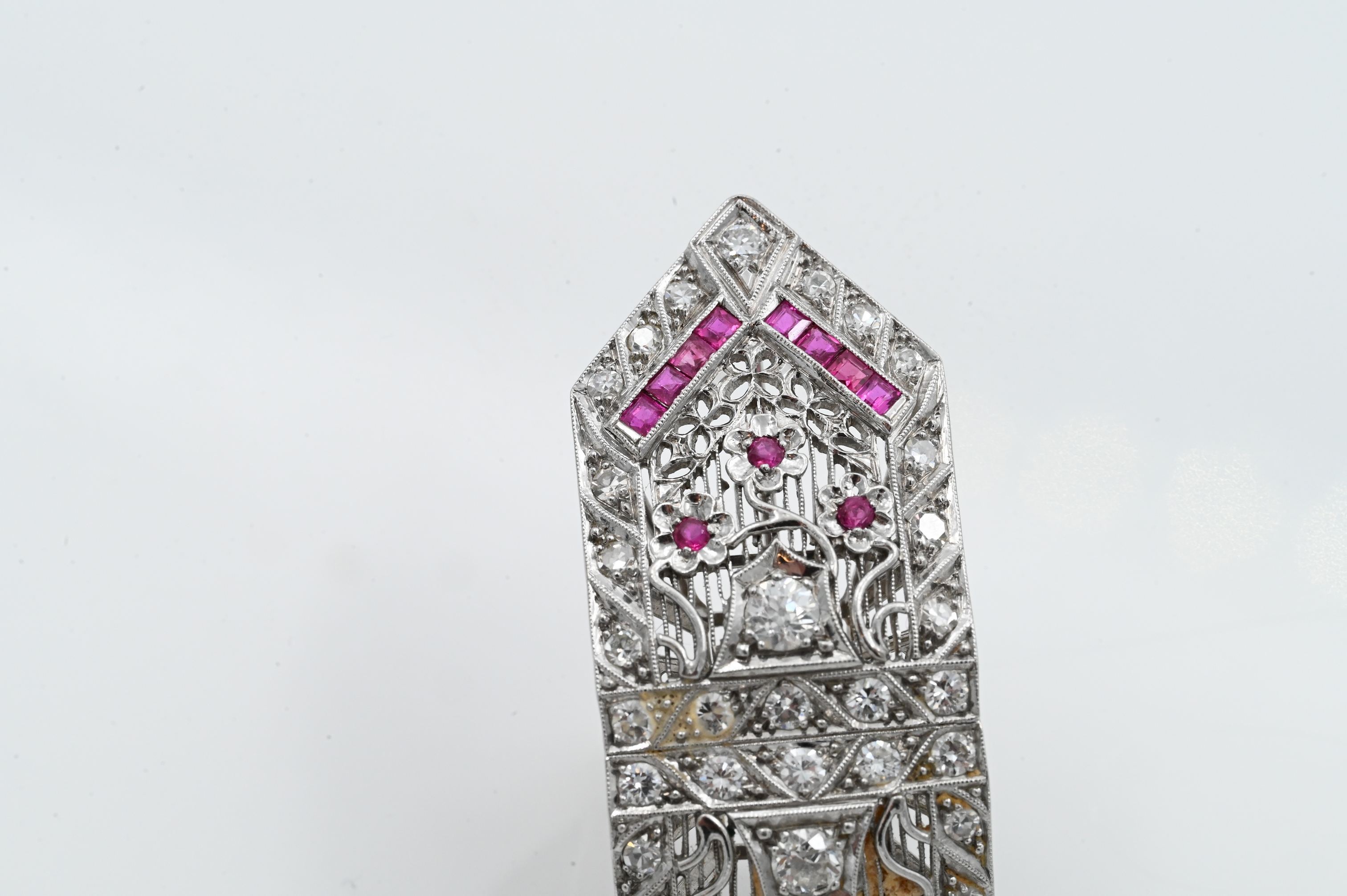 having sixteen 2 millimeter square, six 2 millimeter round rubies, and 36 round diamonds, approximately 2.6 carats total