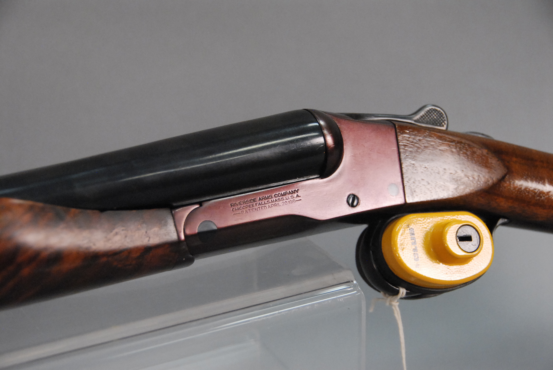 Riverside Arms side by side shotgun, 12 gauge with mahogany stock, 30 barrels marked High Pressure Compressed Steel Barrel and Lug Forged in one piece, s/n 51639 392.