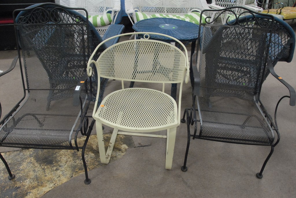 Three outdoor chairs.