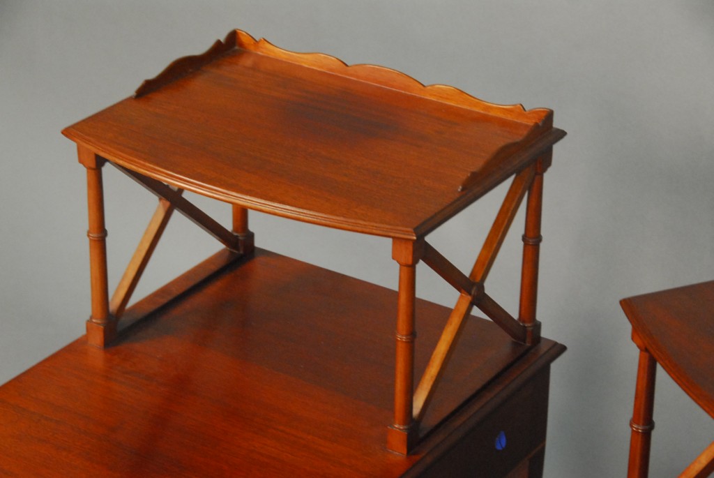 Lot 760: Pair of Margolis mahogany Federal style two tier tables stamped Margolis Shops Hartford. – ht. 29in.