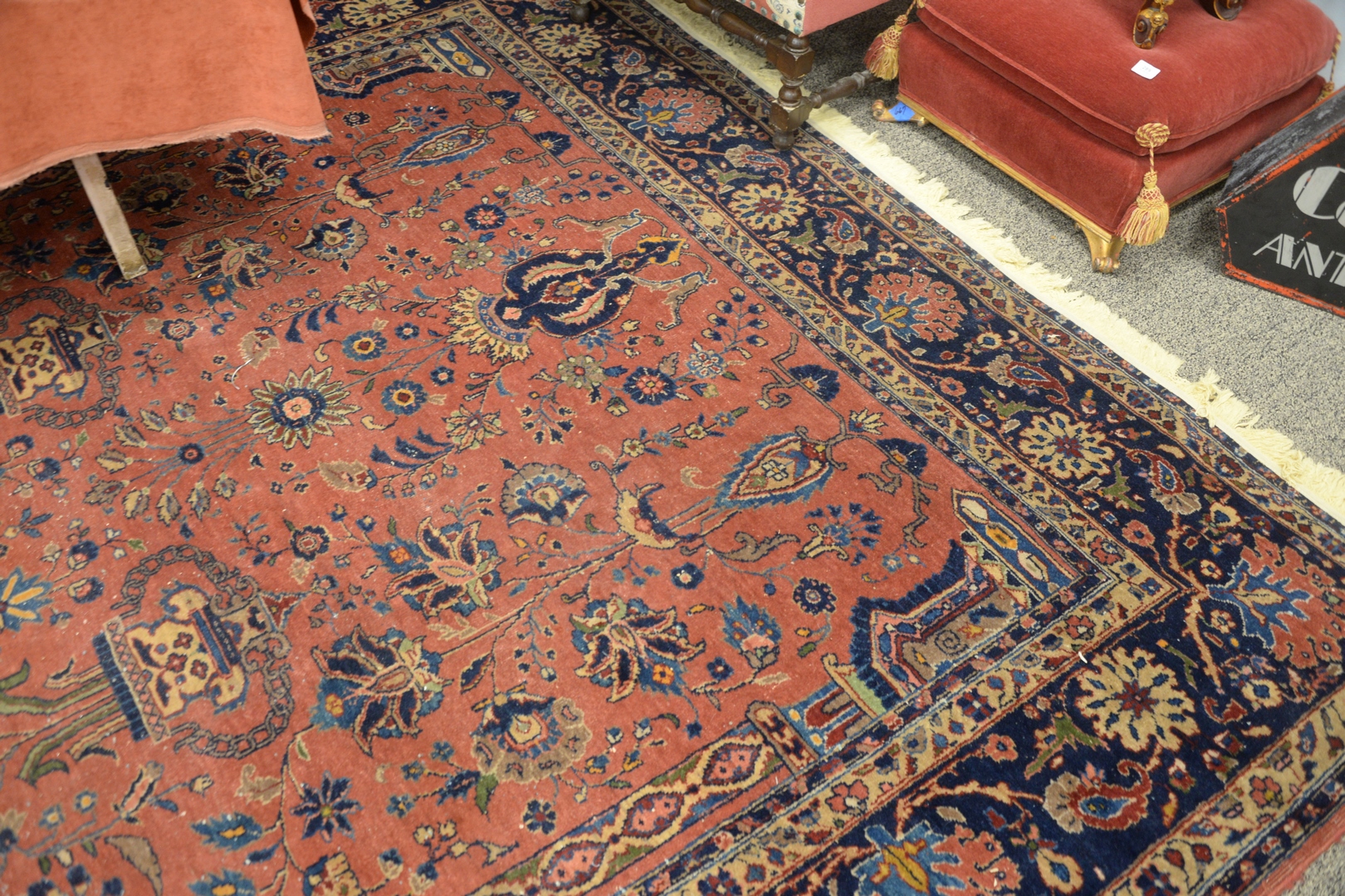 Oriental Room Size Carpet, 8′ 6 x 16′ 1, with wear.