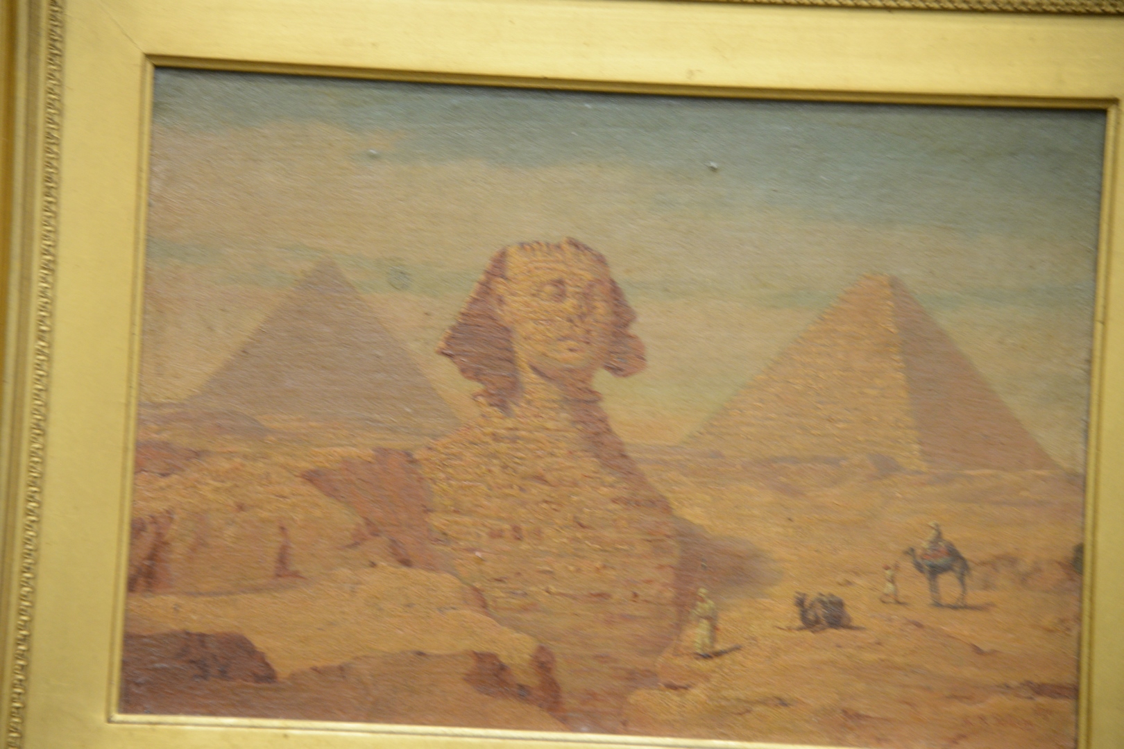Lot 768: Miner Kellogg American, 1814 – 1889, Sphinx and Pyramids at Cheops and Cyphrene, Egypt, oil on board, signed and dated lower right…