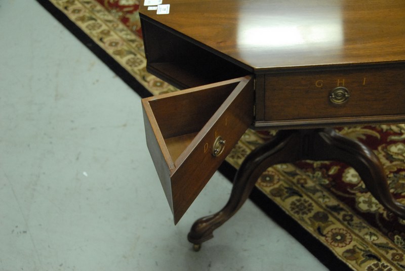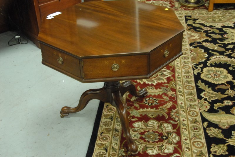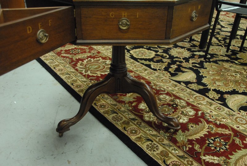 Biggs Jefferson file table, eight sided, certificate in drawer, ht. 29in. wd. 31in.