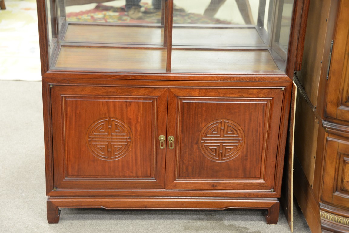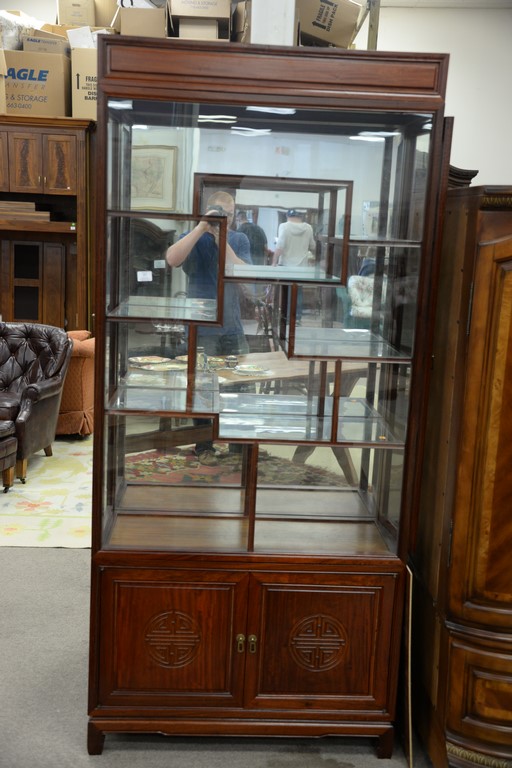 Chinese curio cabinet with eight glass shelves. ht. 79 3/4in., wd. 36in.