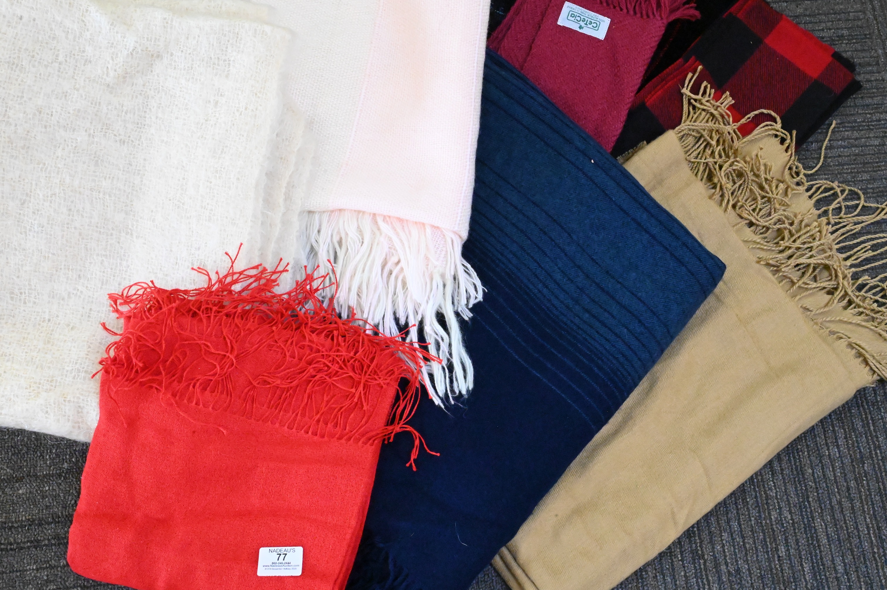 Lot 77: Group of Ten Handwoven Scarves and Mohair Throws