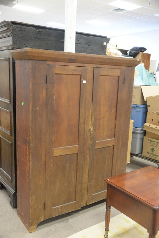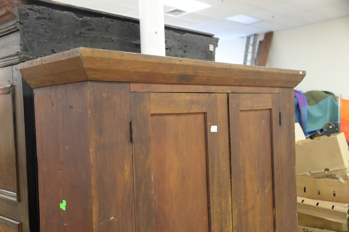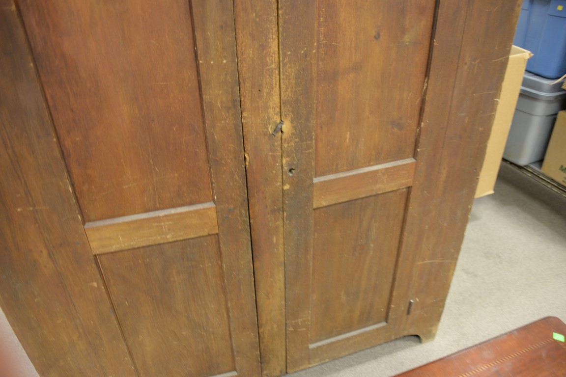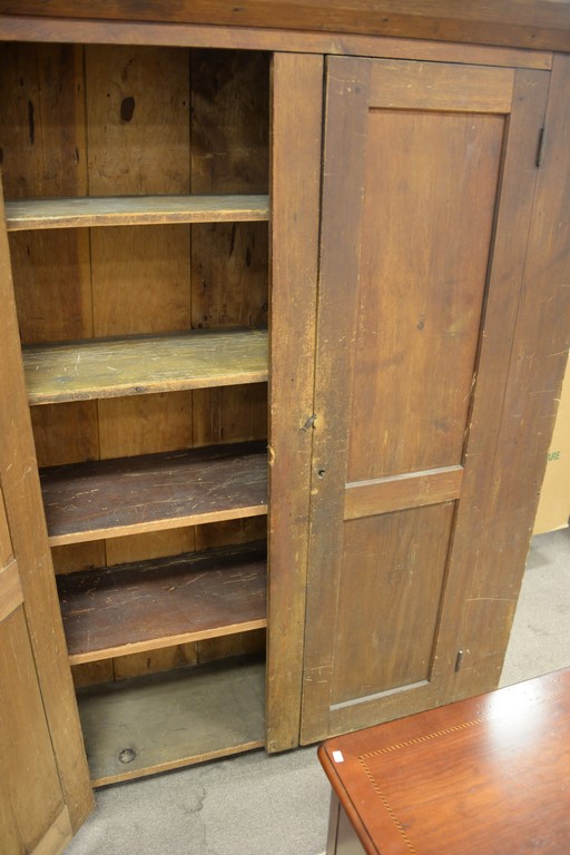 Primitive two door pine cupboard with wood shelves. ht. 72in., wd. 57in., dp. 17in.