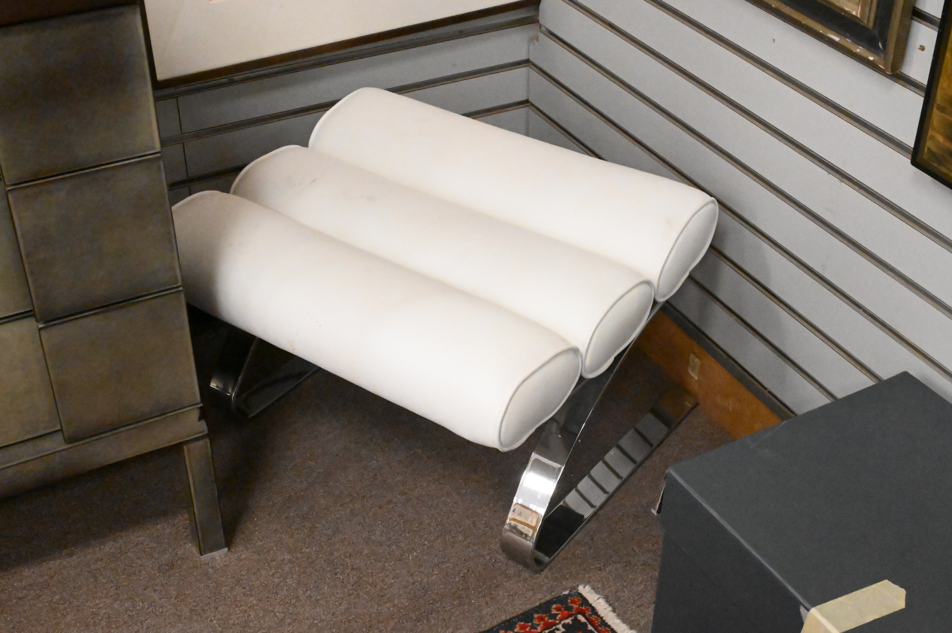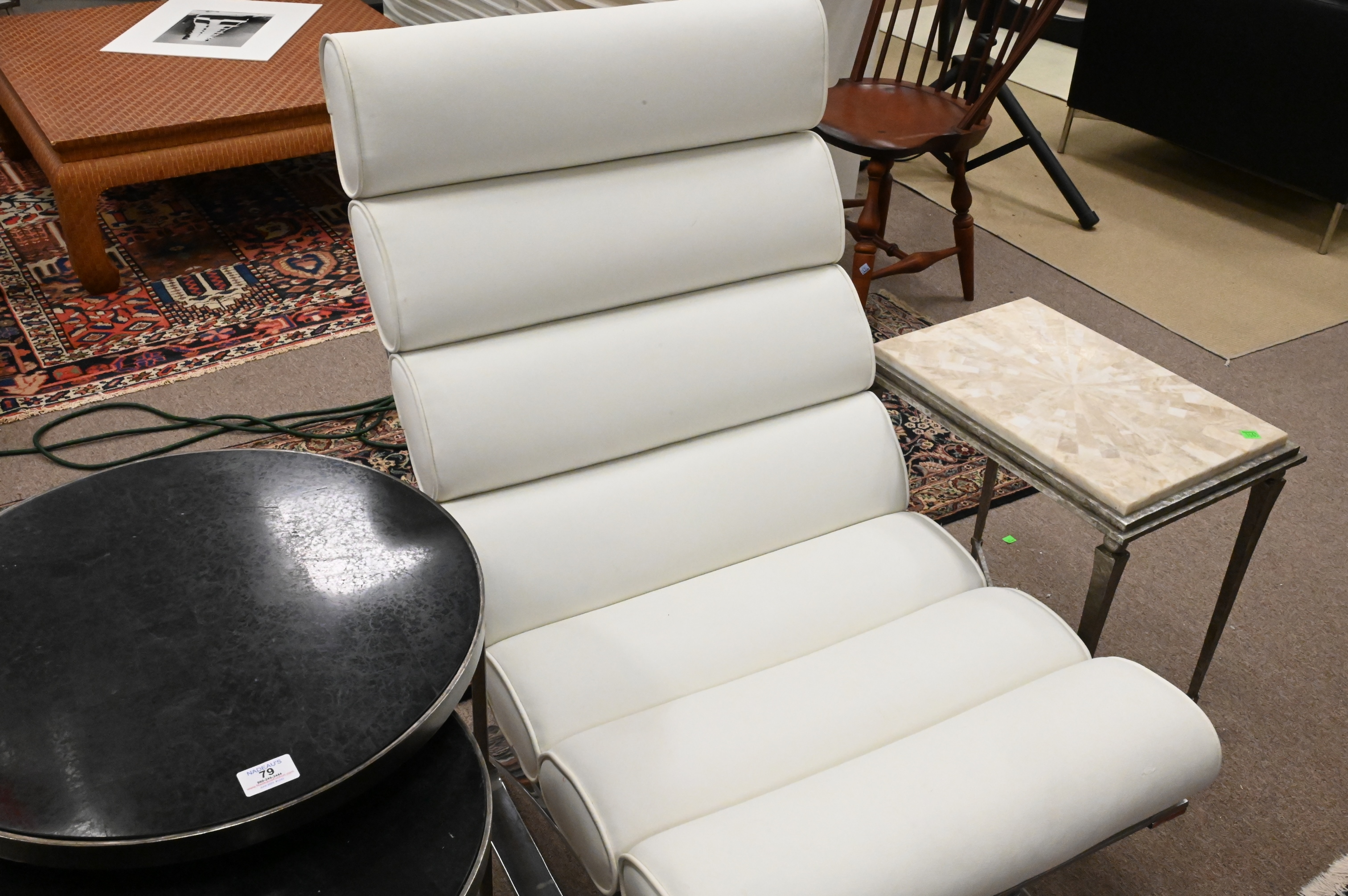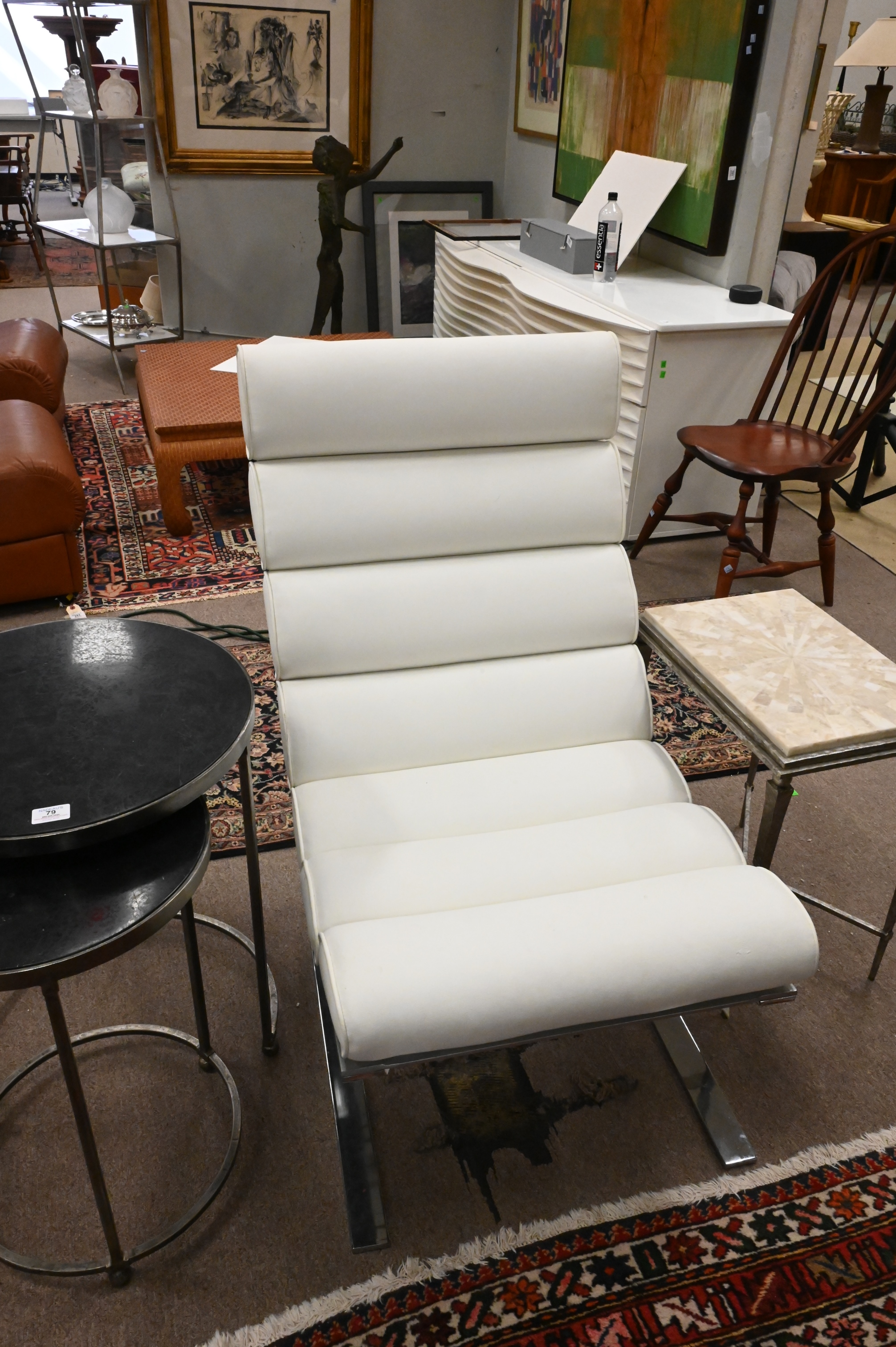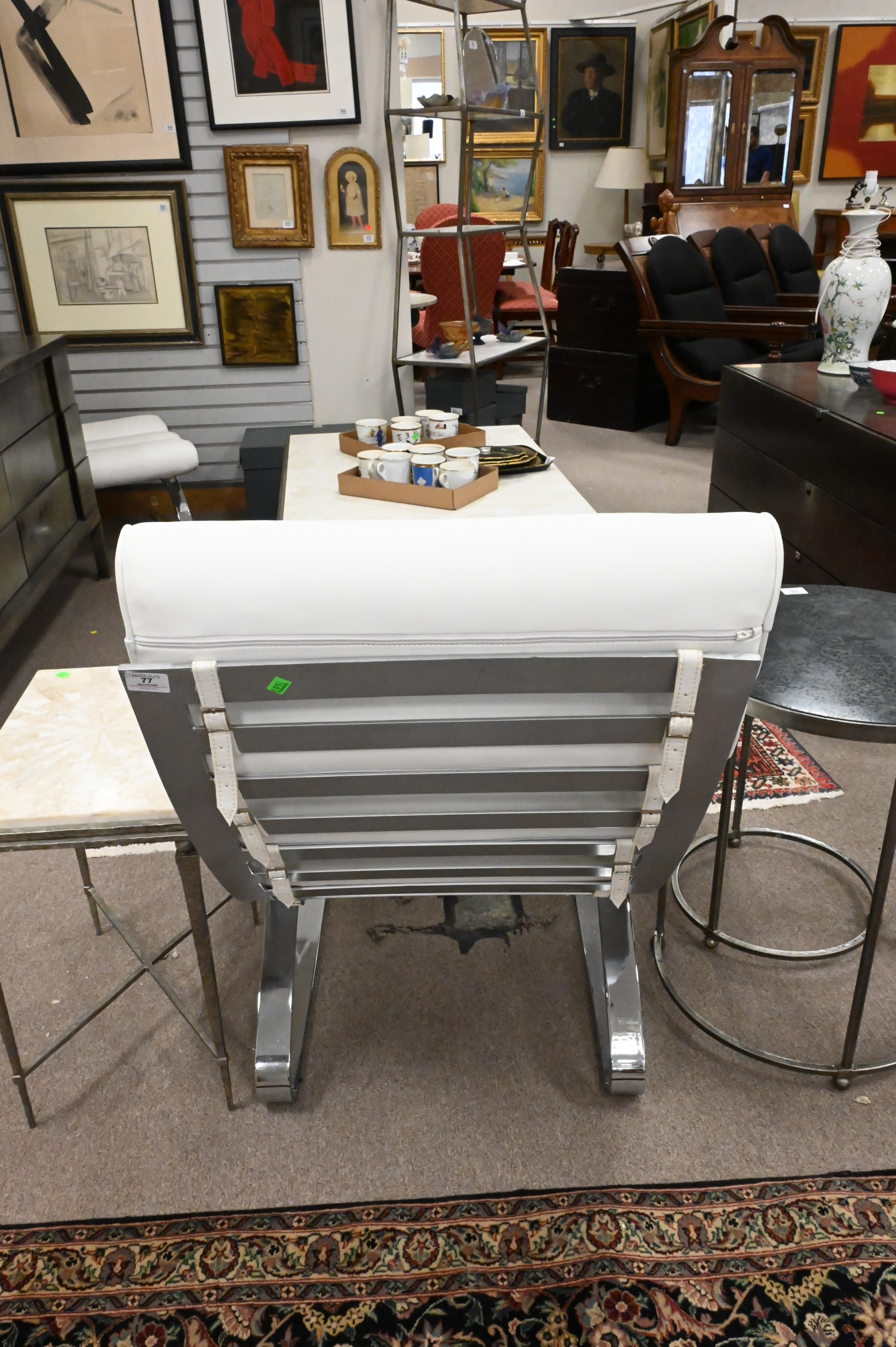 Reinhold Adolf and Hans-Jargen Schropfer (German 20th Century) “Sinus” Leather Upholstered Chair and Ottoman, each having chrome plated bases, height 33 1/2 inches, width 27 inches, depth 26 inches, Provenance: A Private Collection from Greenwich Connecticut.