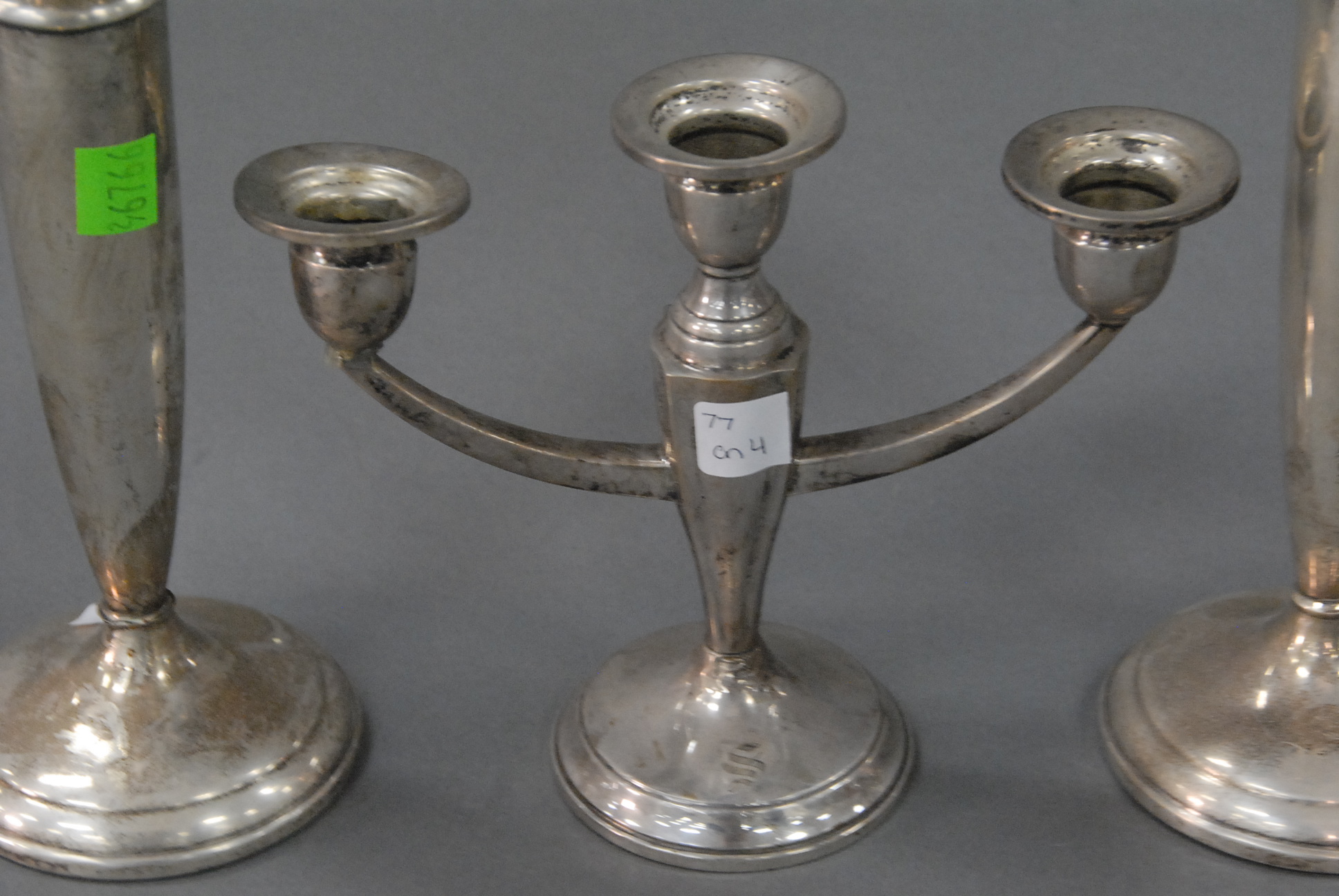 Sterling silver lot pair of small weighted candelabra and pair of weighted candlesticks.