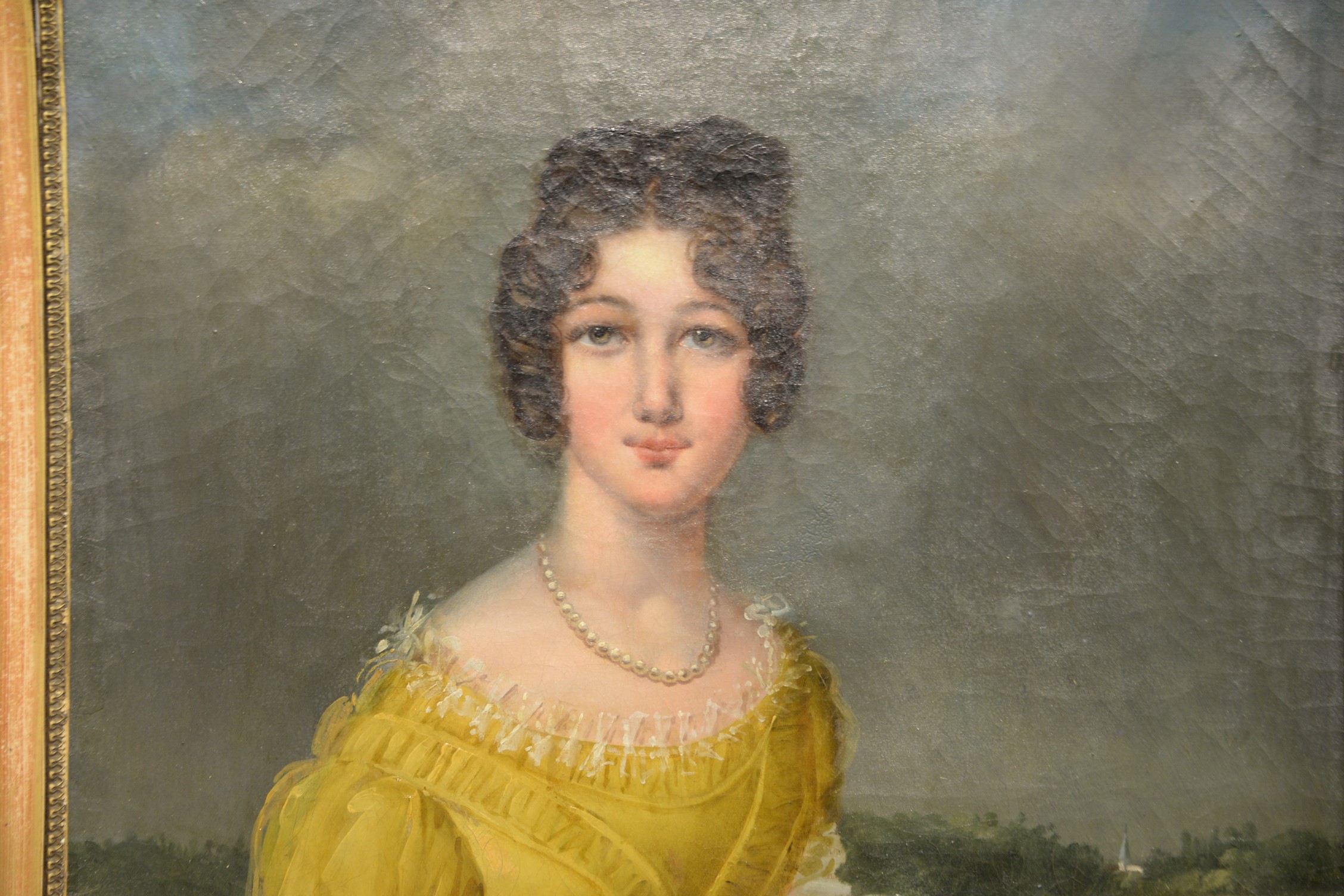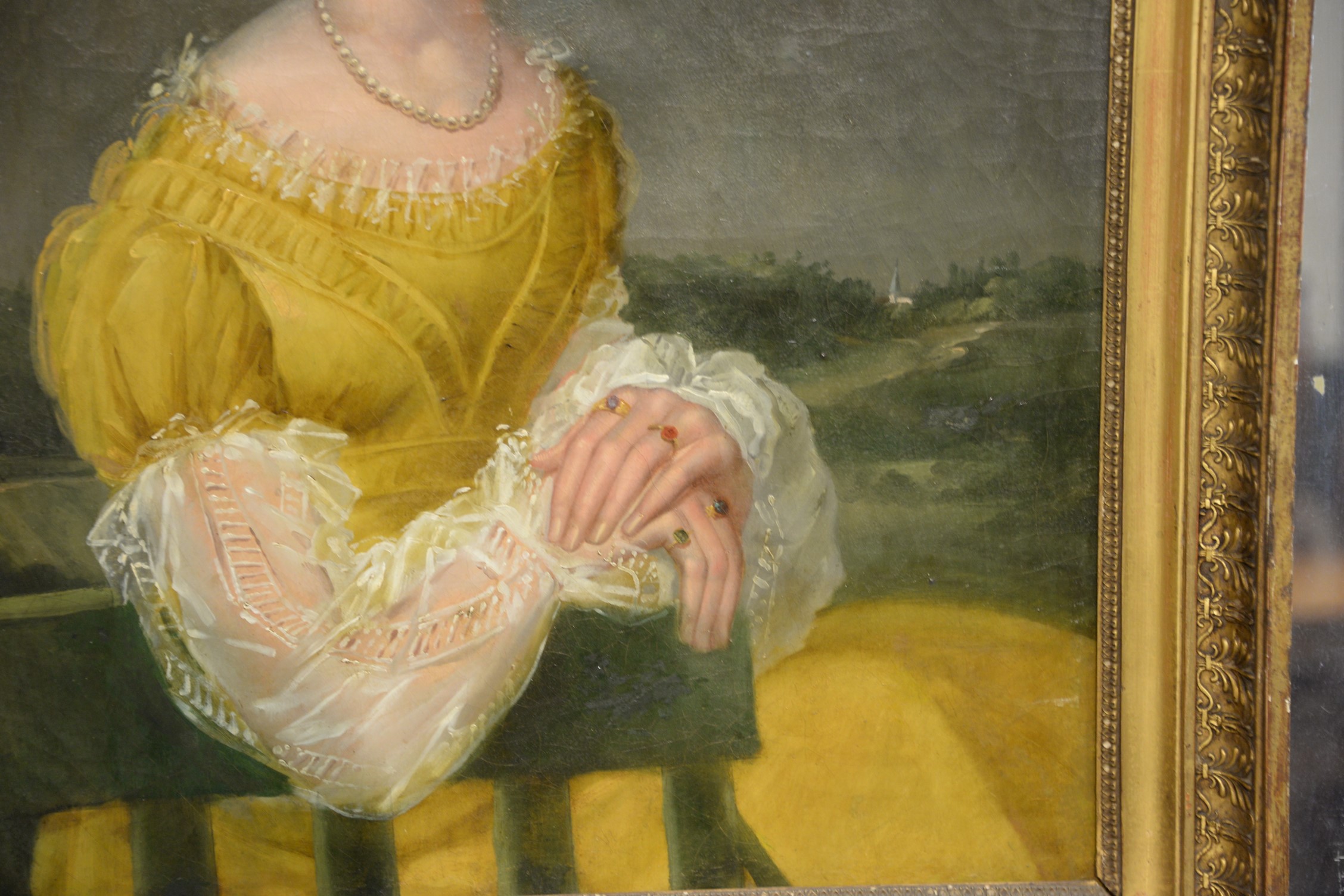 Lot 77: Victorian oil on canvas Elegant Seated Woman Sitting in foreground with landscape background 24 x 20