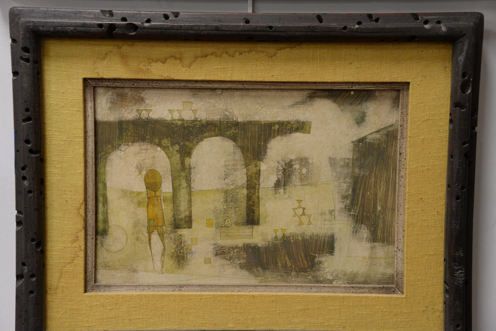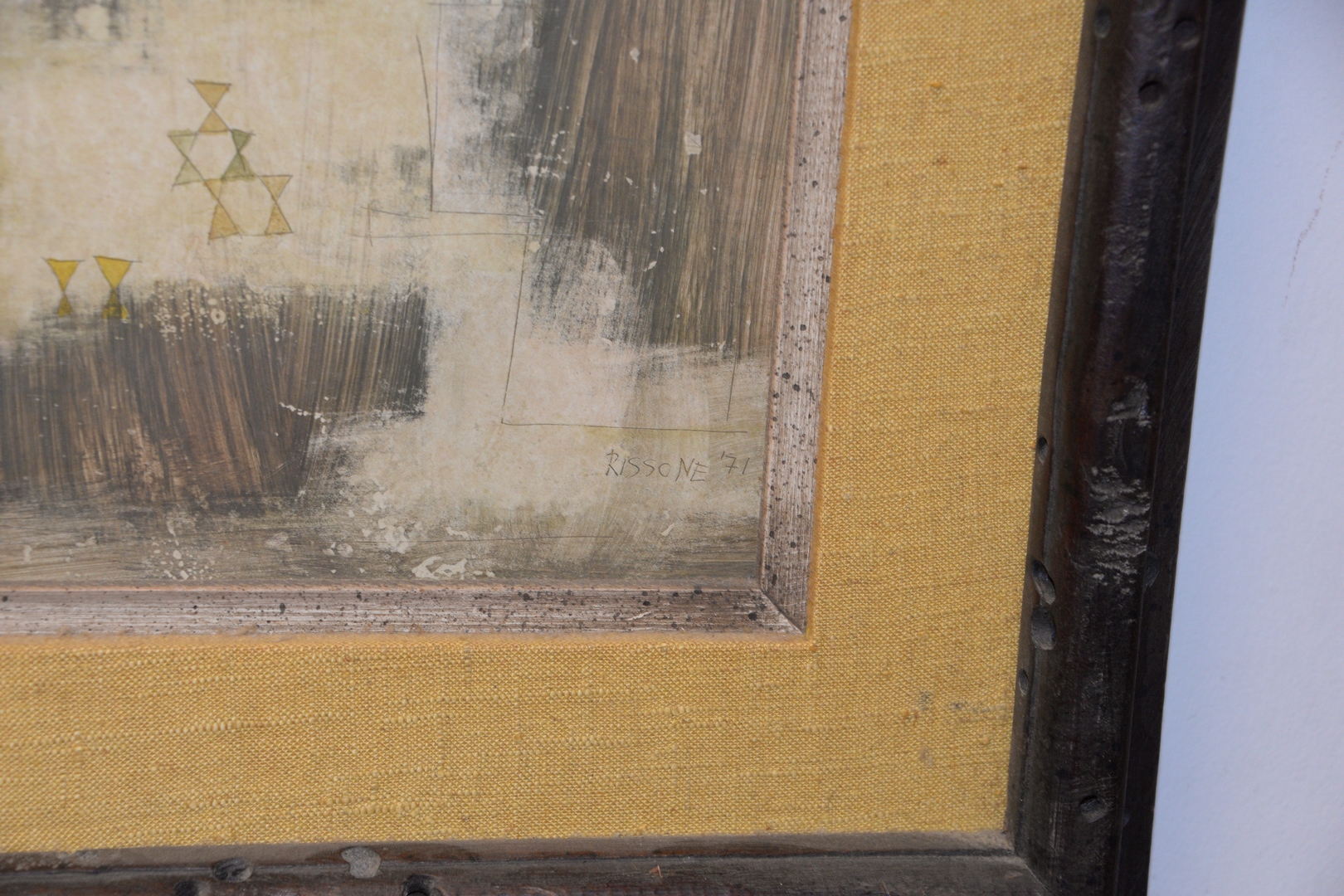 Lot 775: Paolo Rissone Italian, b. 1925, two geometric landscapes, oil on board, both signed and dated lower right: Rissone ’71 11 1/2 x …