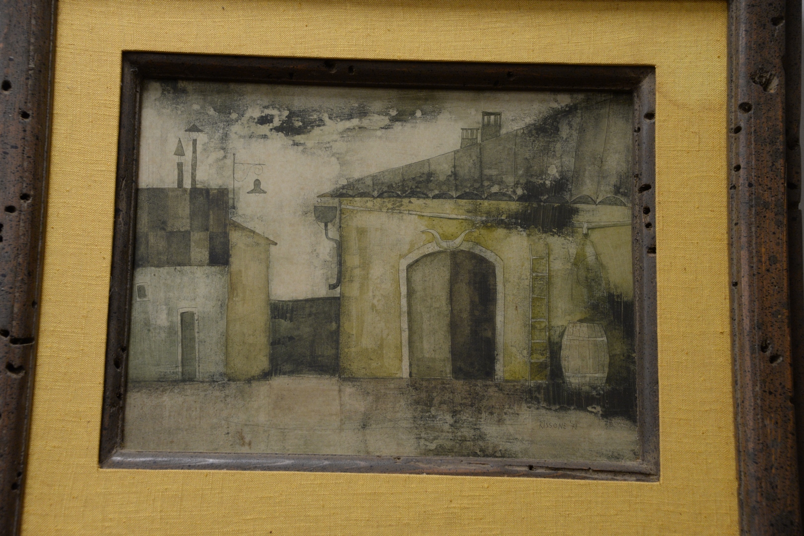 Paolo Rissone Italian, b. 1925, two geometric landscapes, oil on board, both signed and dated lower right: Rissone ’71 11 1/2 x 17 1/4 and 13 x 17 1/2.