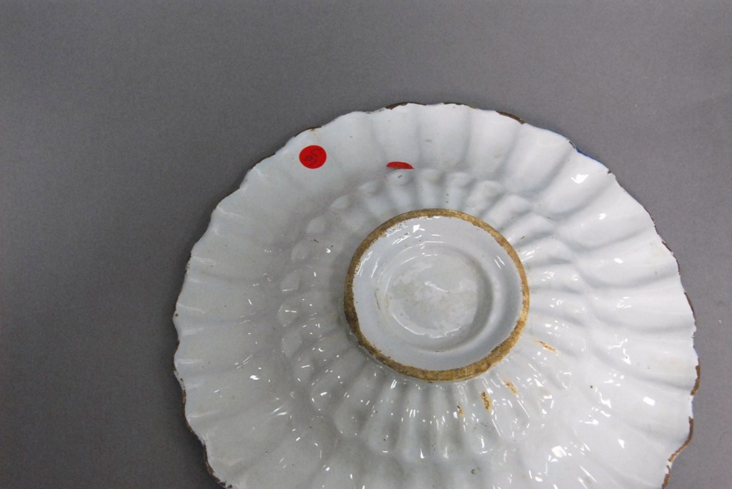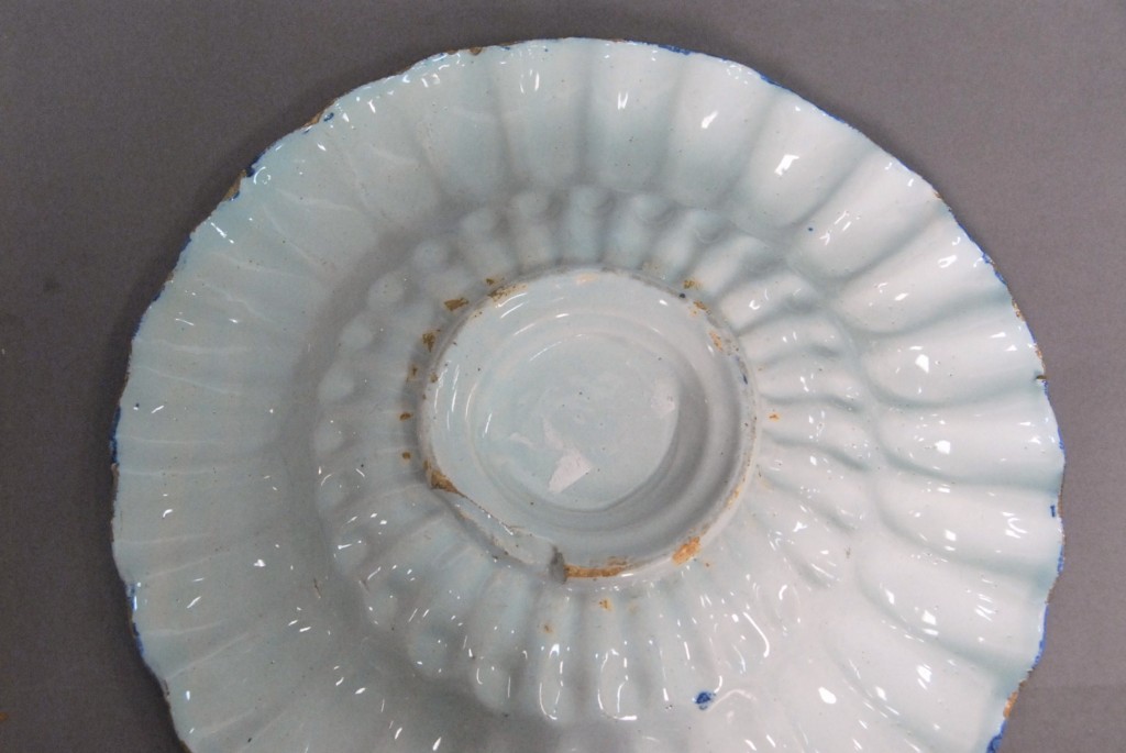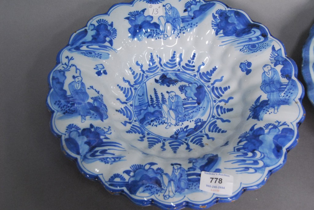 Lot 778: Pair of Delft deep plates with scalloped edges in typical blue and white and Oriental designs, 18th century