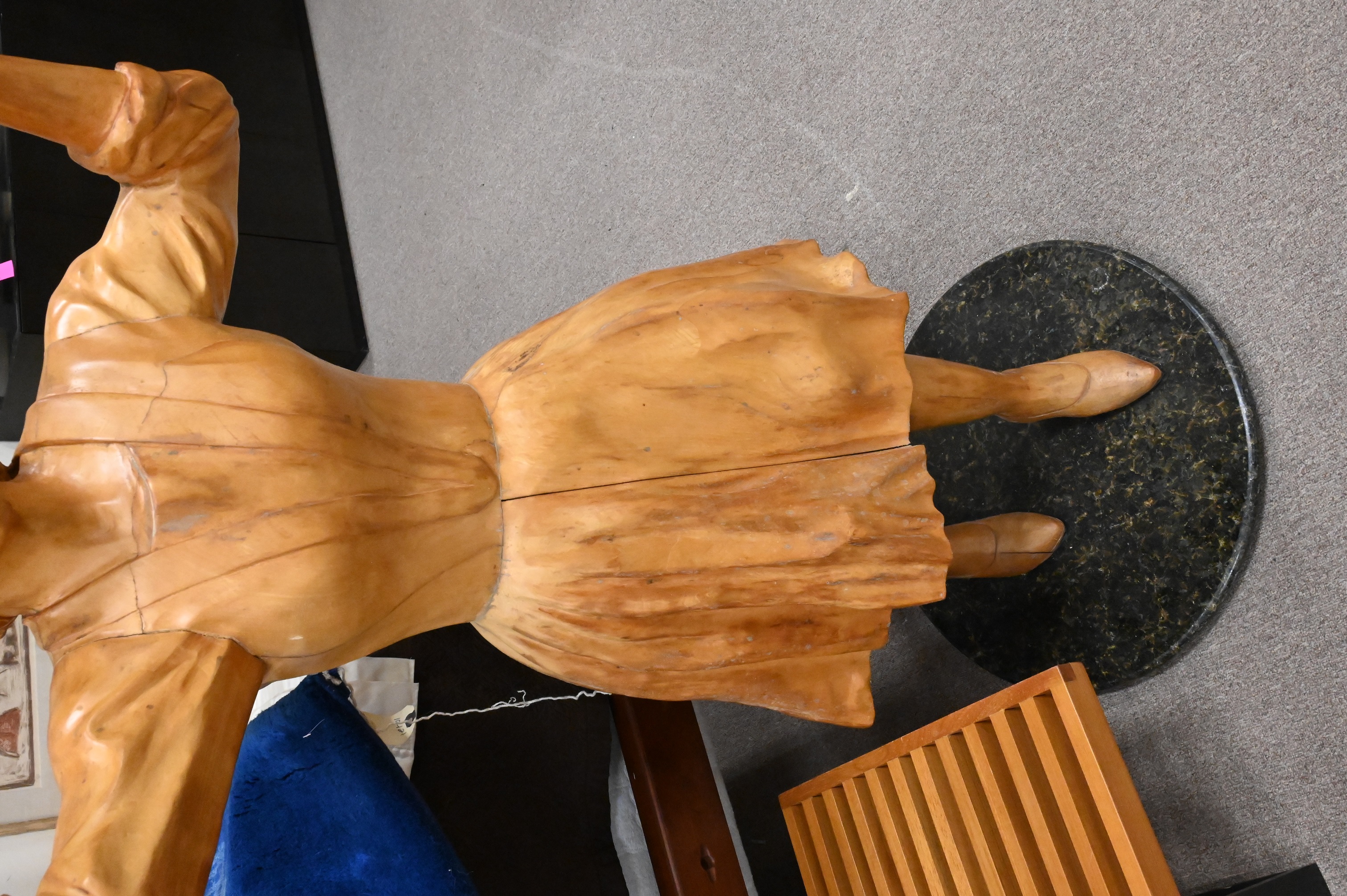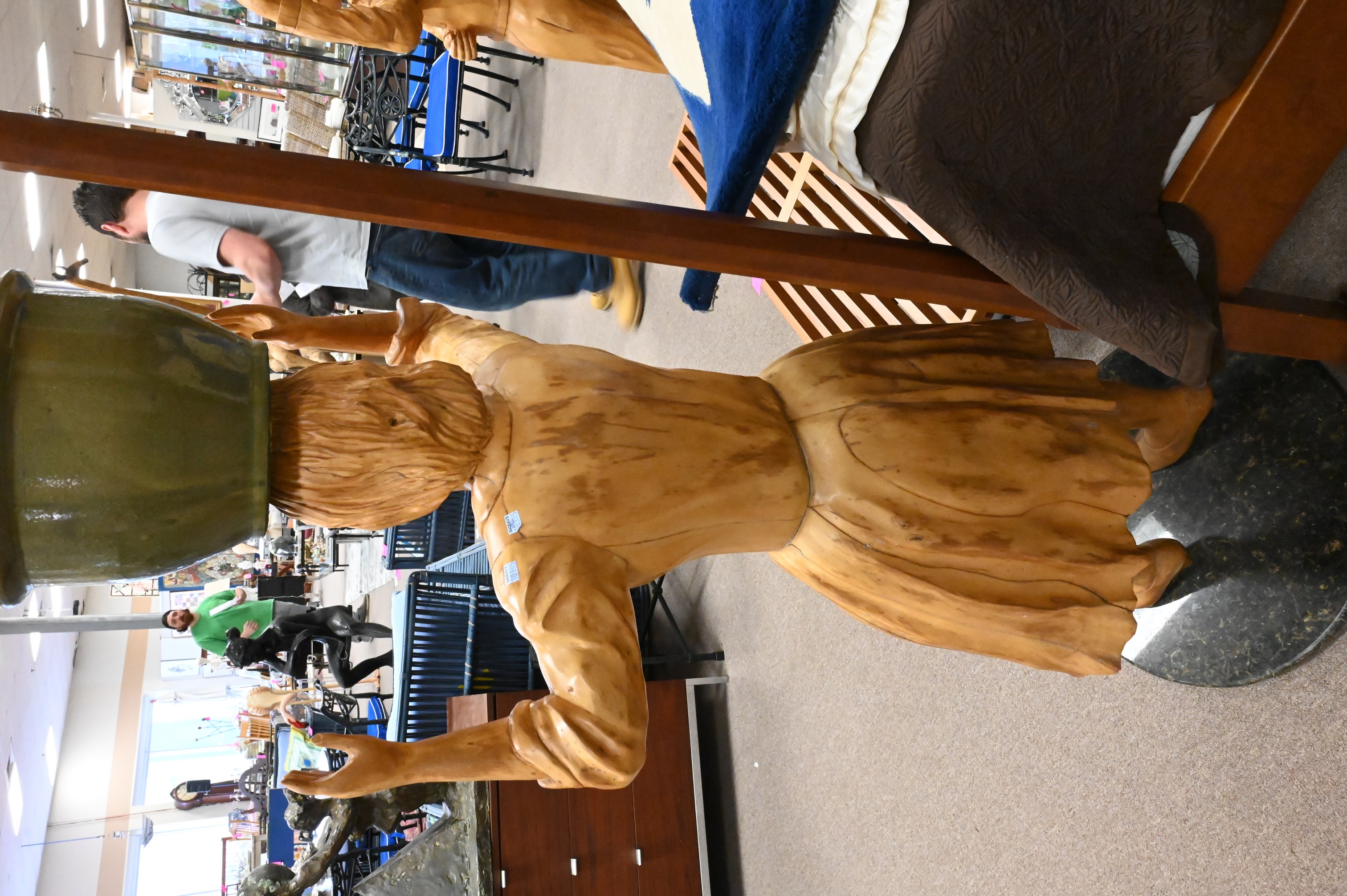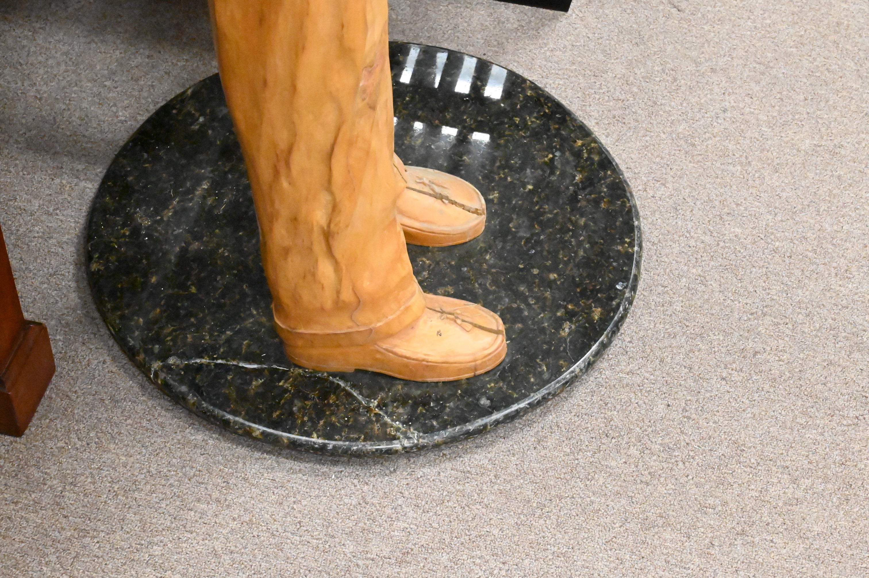 Lot 78: Carved Wooden Male and Female Figures having Round Granite Bases