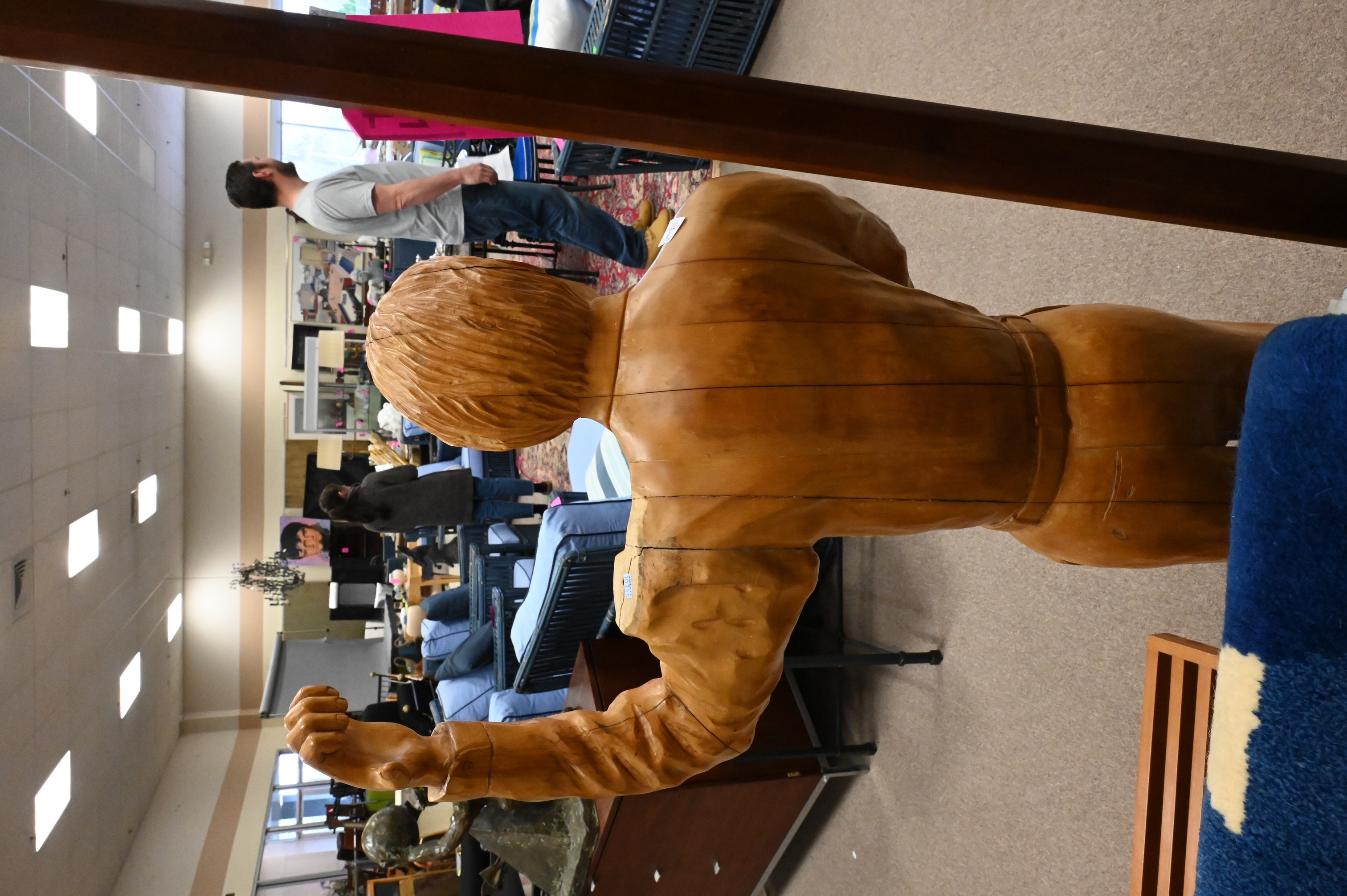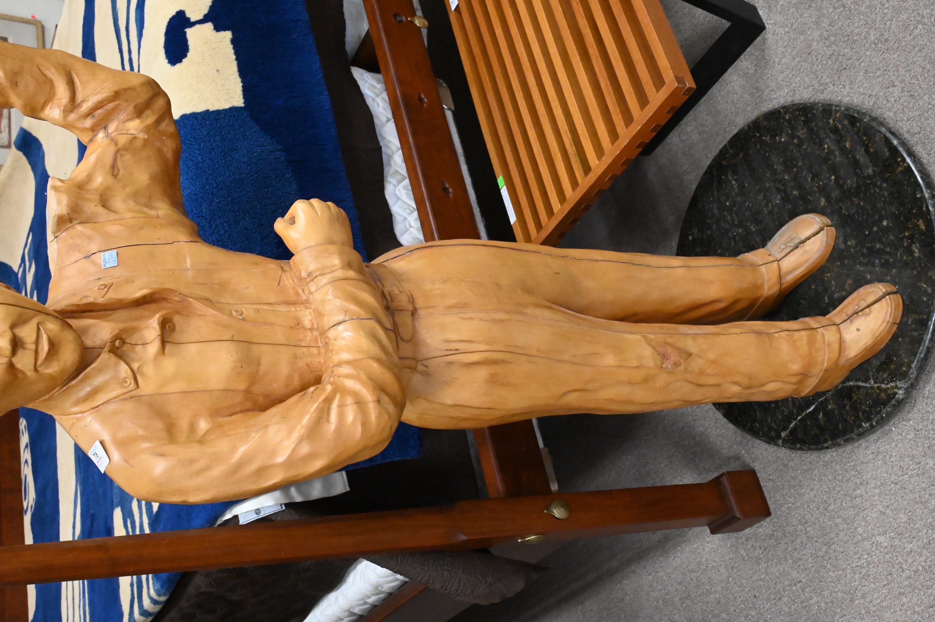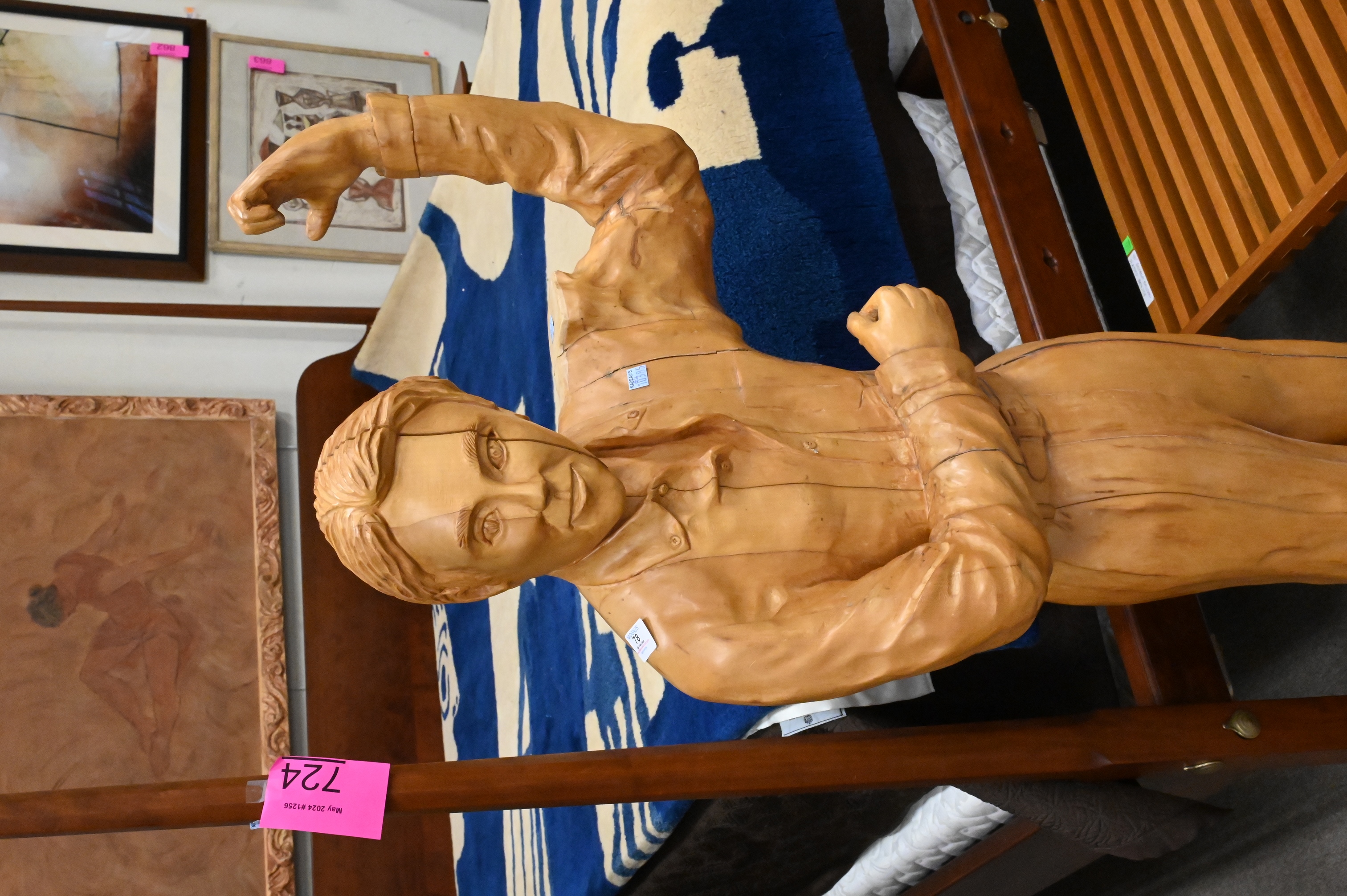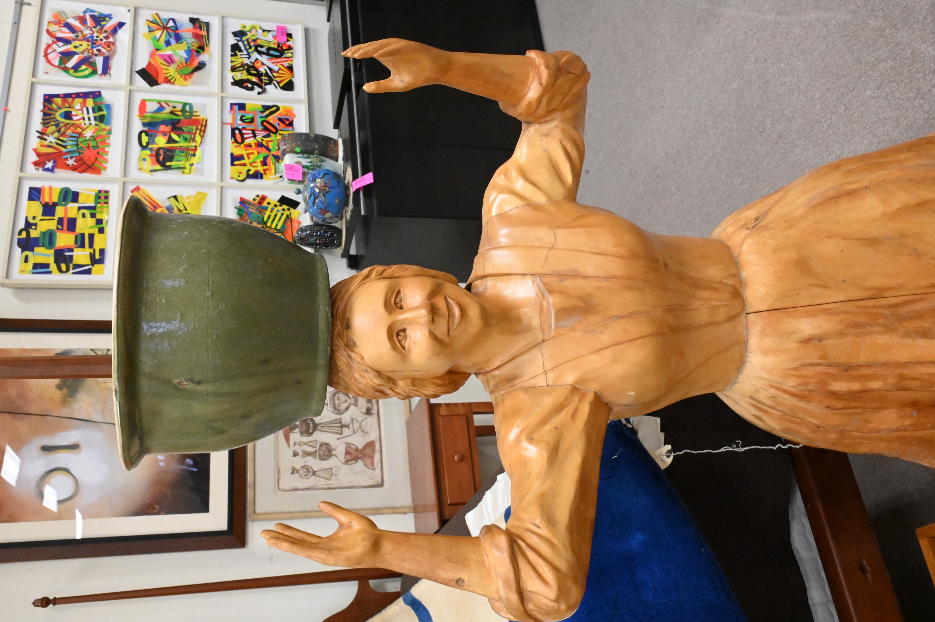 Lot 78: Carved Wooden Male and Female Figures having Round Granite Bases