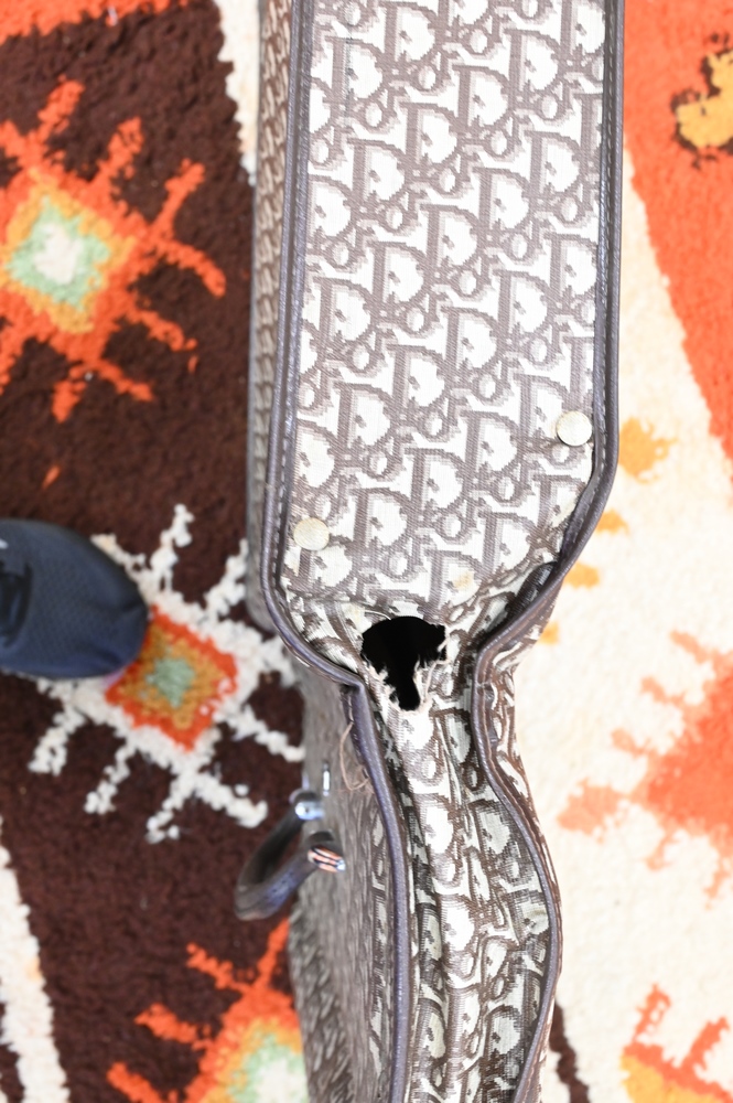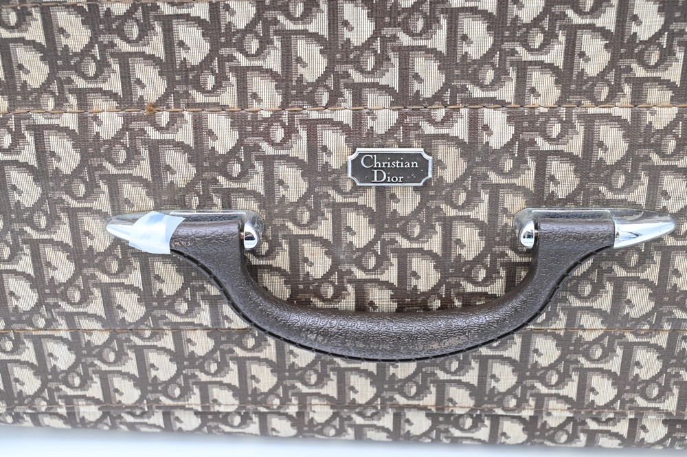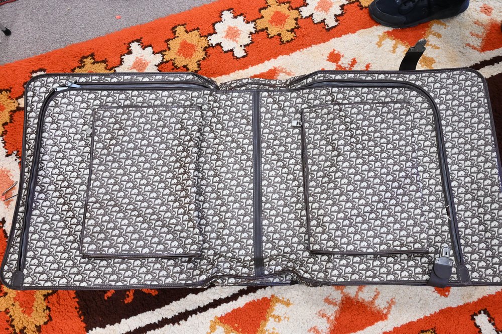 Lot 78: Christian Dior Monogrammed Luggage Bag, folding suitcase, marked Christian Dior, height 22 inches, width 24.5 inches.