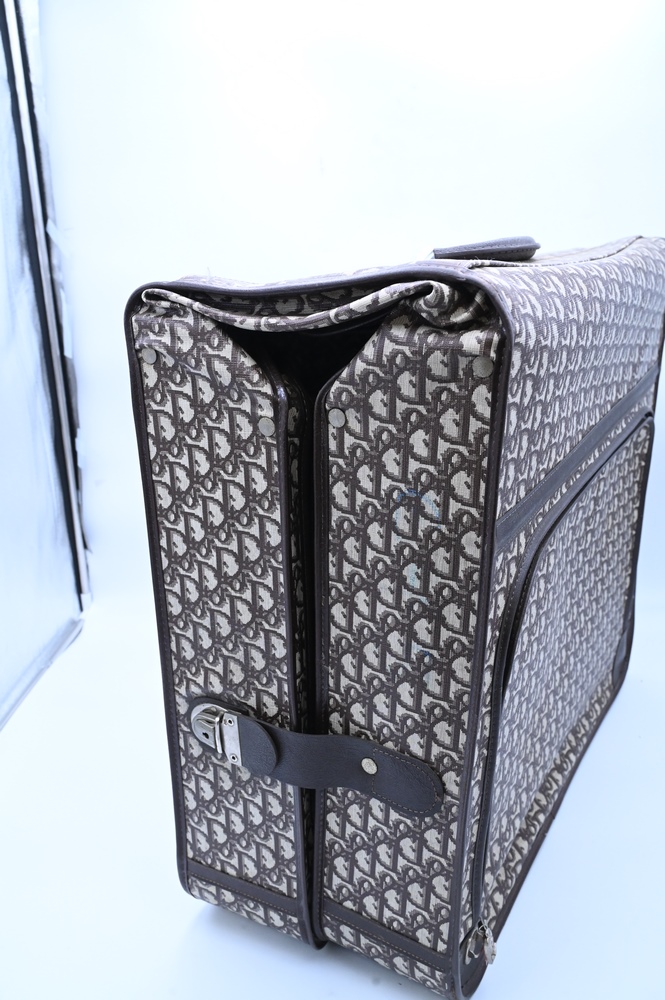 Christian Dior Monogrammed Luggage Bag, folding suitcase, marked Christian Dior, height 22 inches, width 24.5 inches.