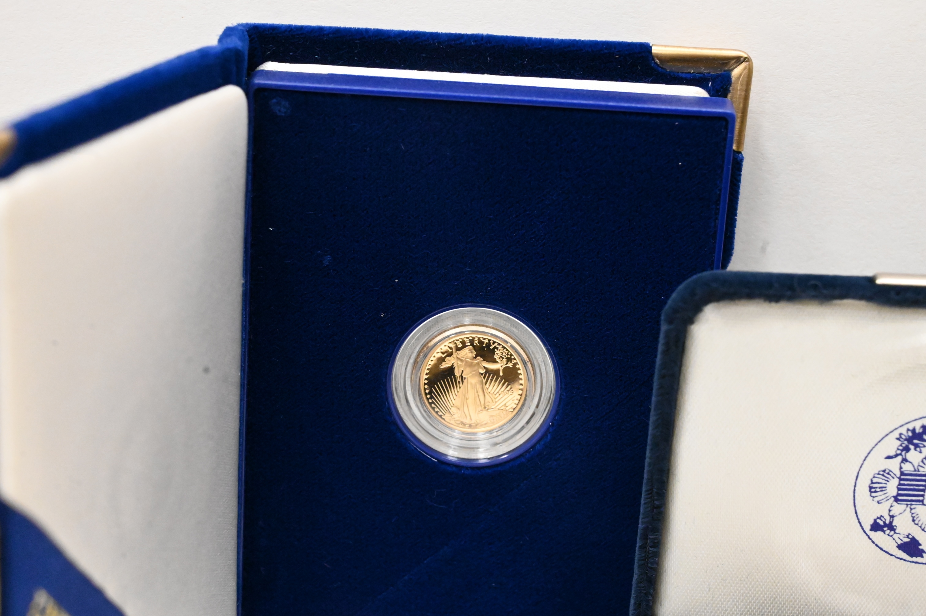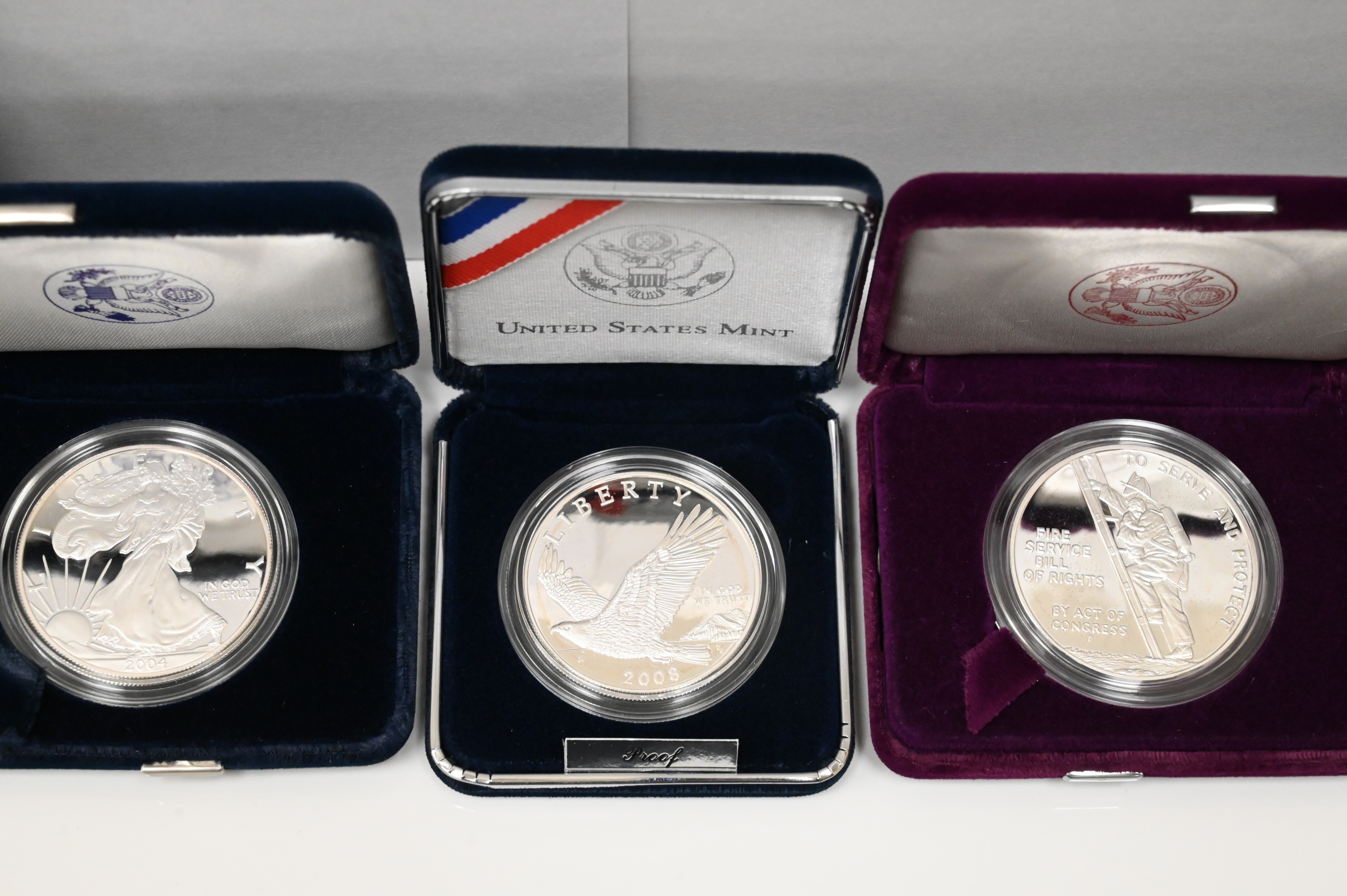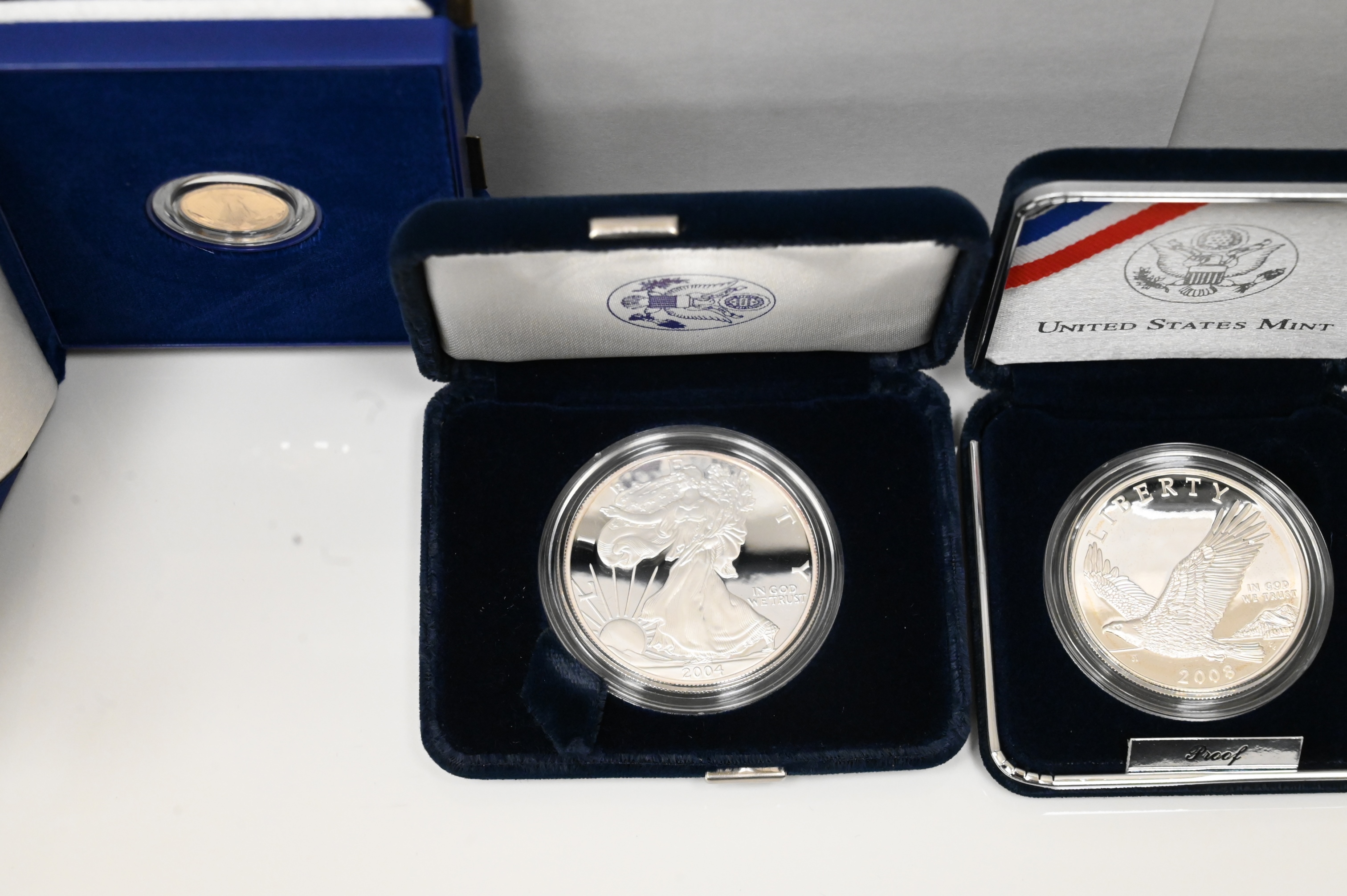 Five Silver Proofs, to include 2014 silver Civil Rights, 2004 American Eagle silver proof, 1992 Ben Franklin silver proof, 2008 Bald Eagle silver proof and one 1/10 ounce Gold 1995 American Eagle silver proof.