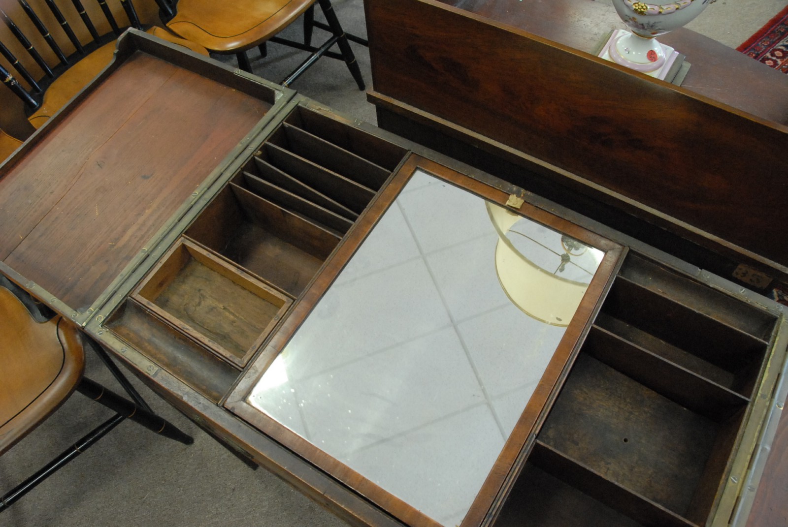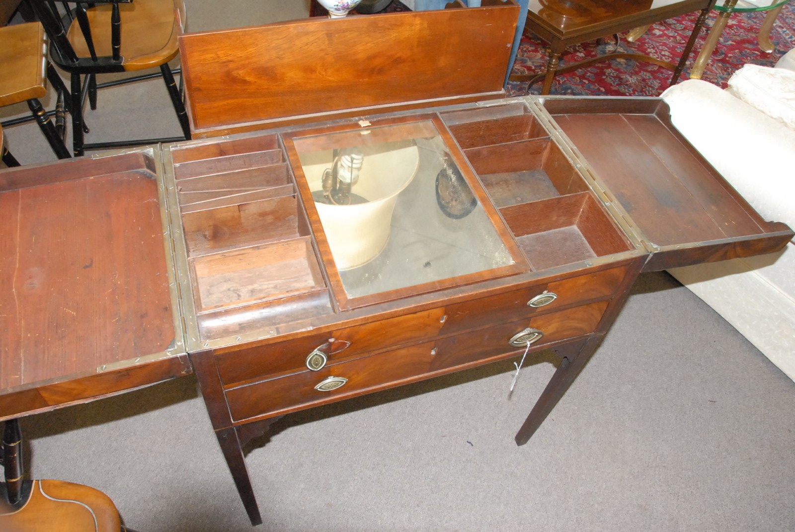 George IV mahogany pedruse with two opening tops on squared tapered legs, 19th century
