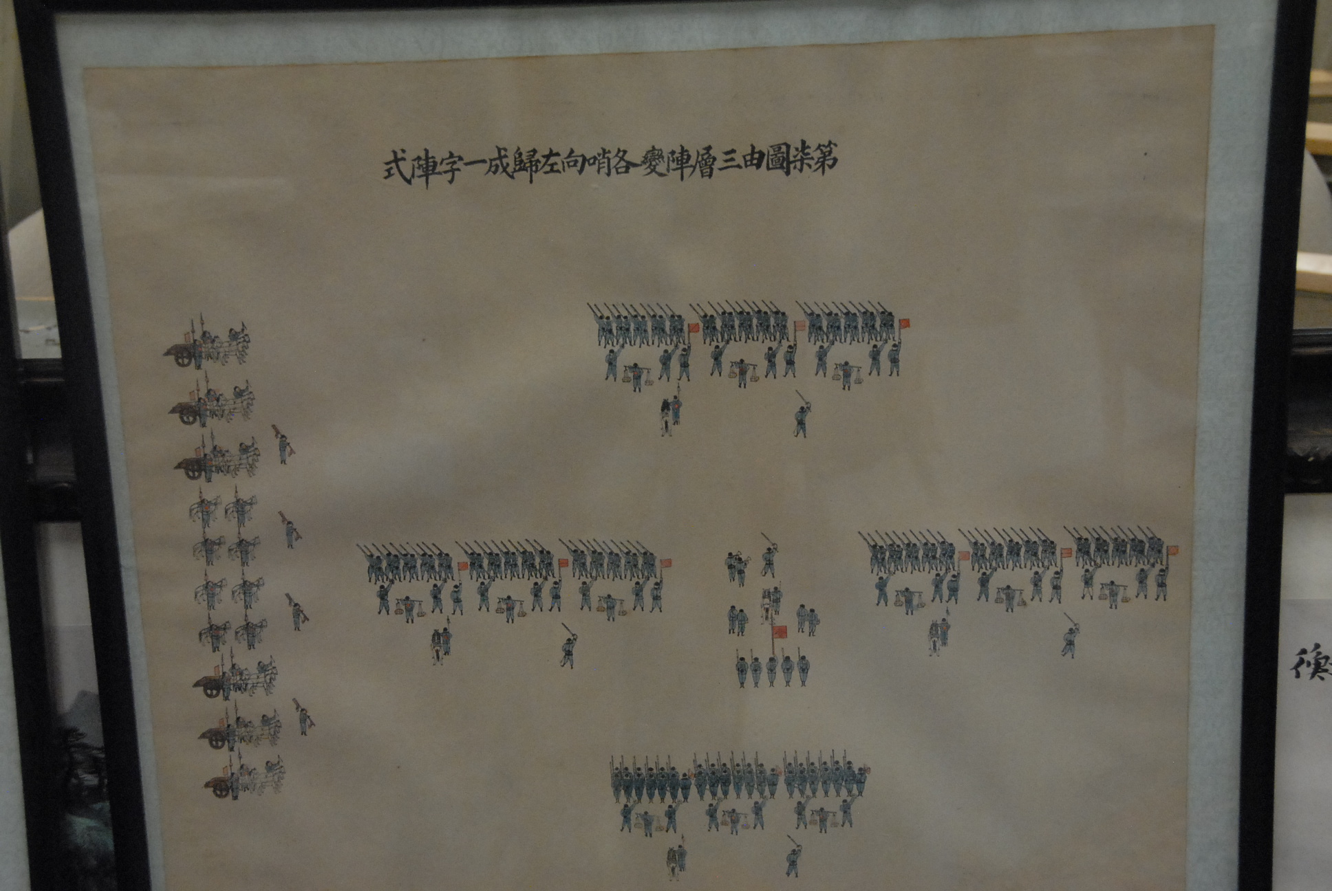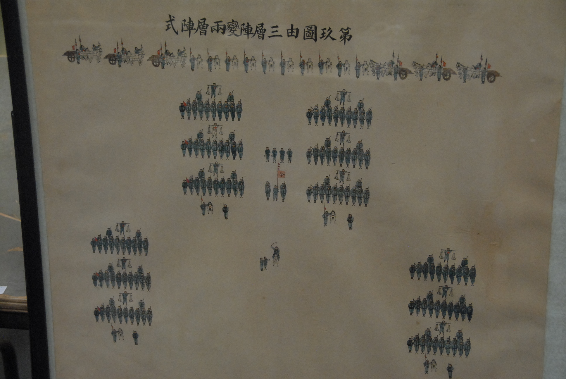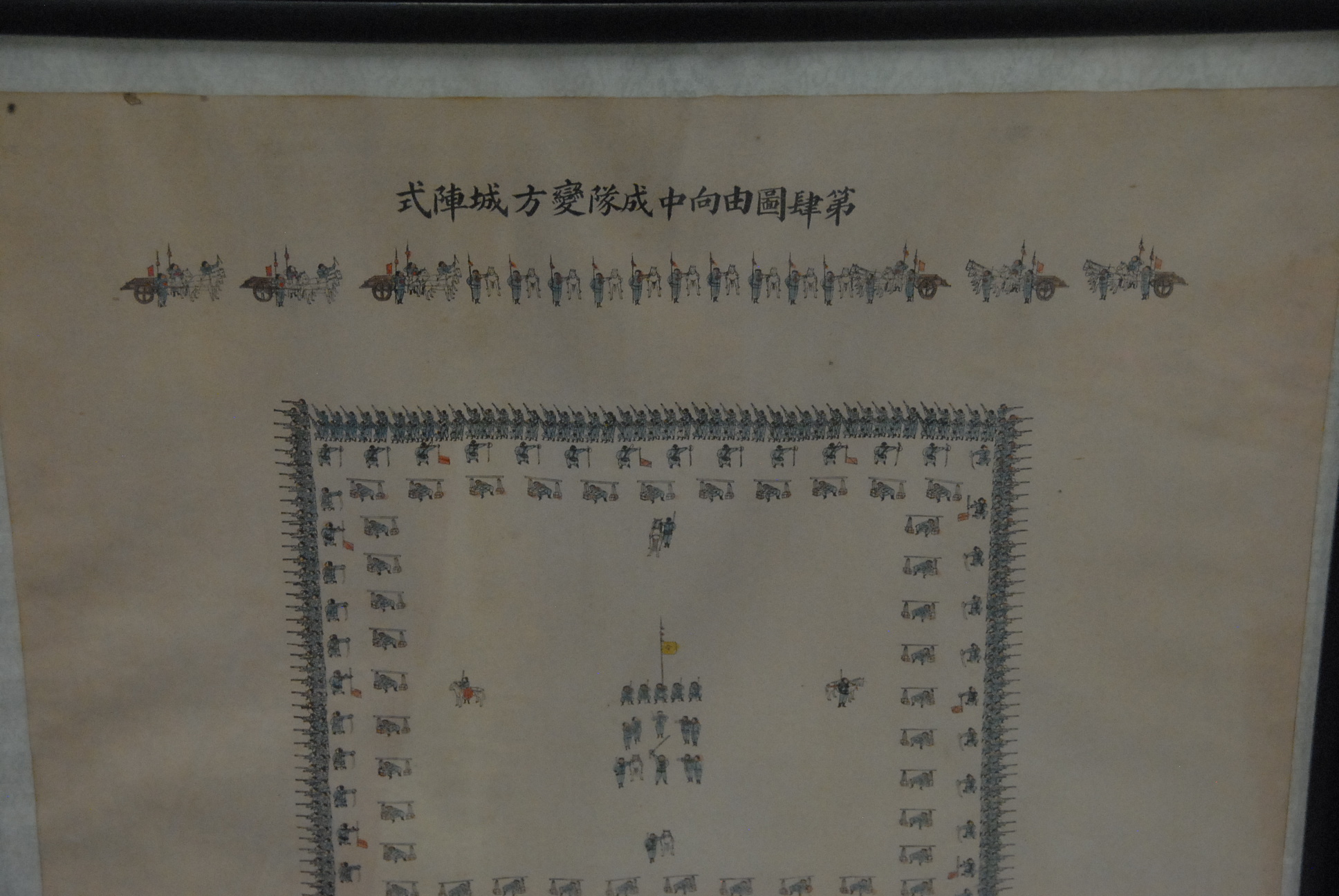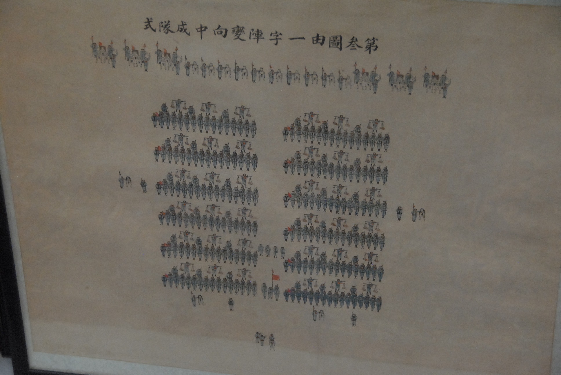 Group of four Oriental watercolors of soldiers in formation.