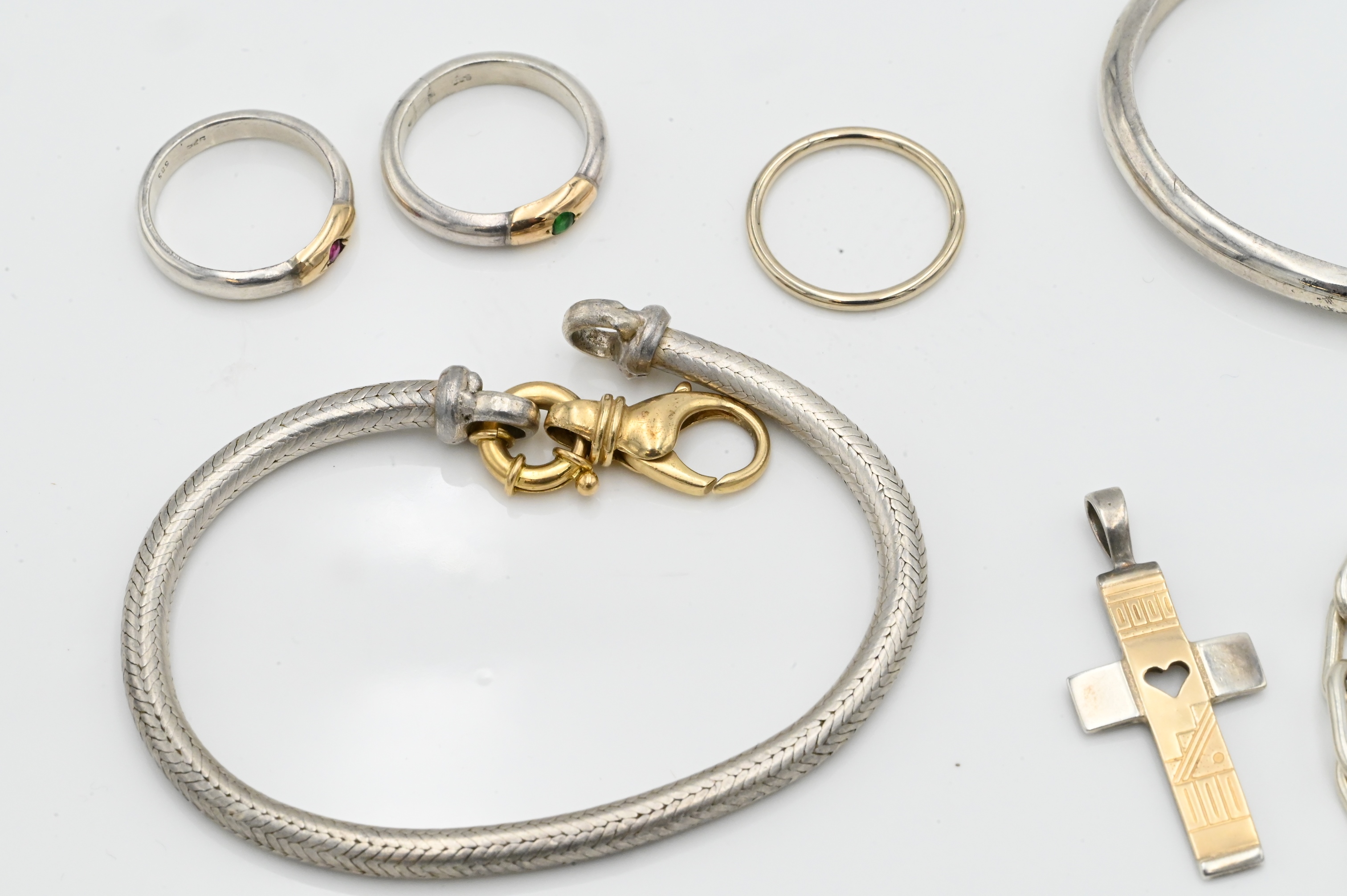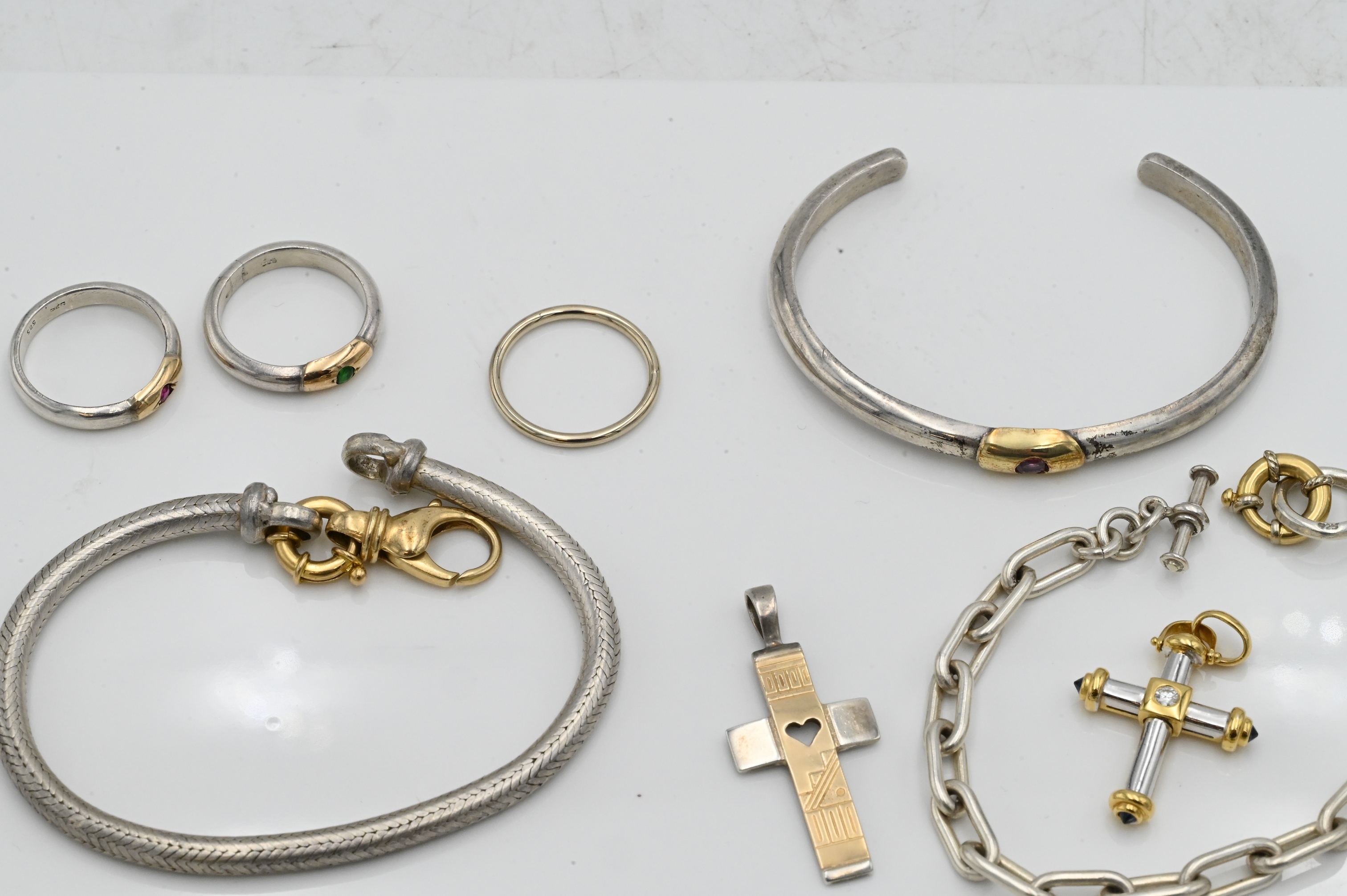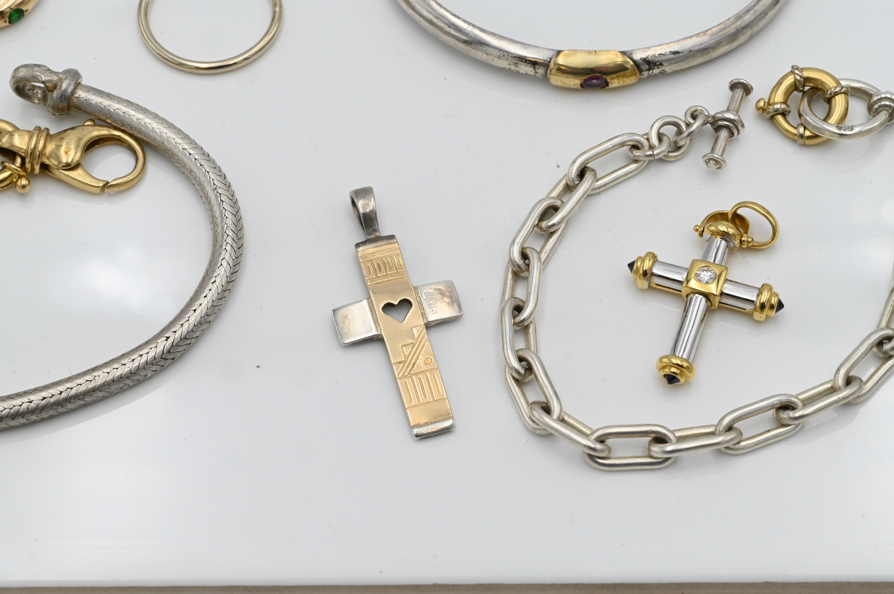 Lot 78: Group of Silver Mounted with Gold Jewelry