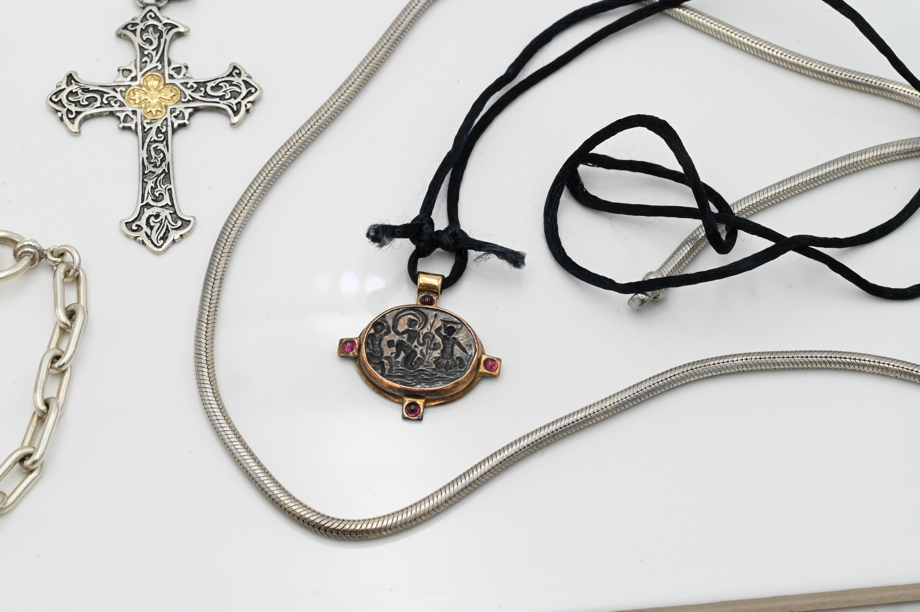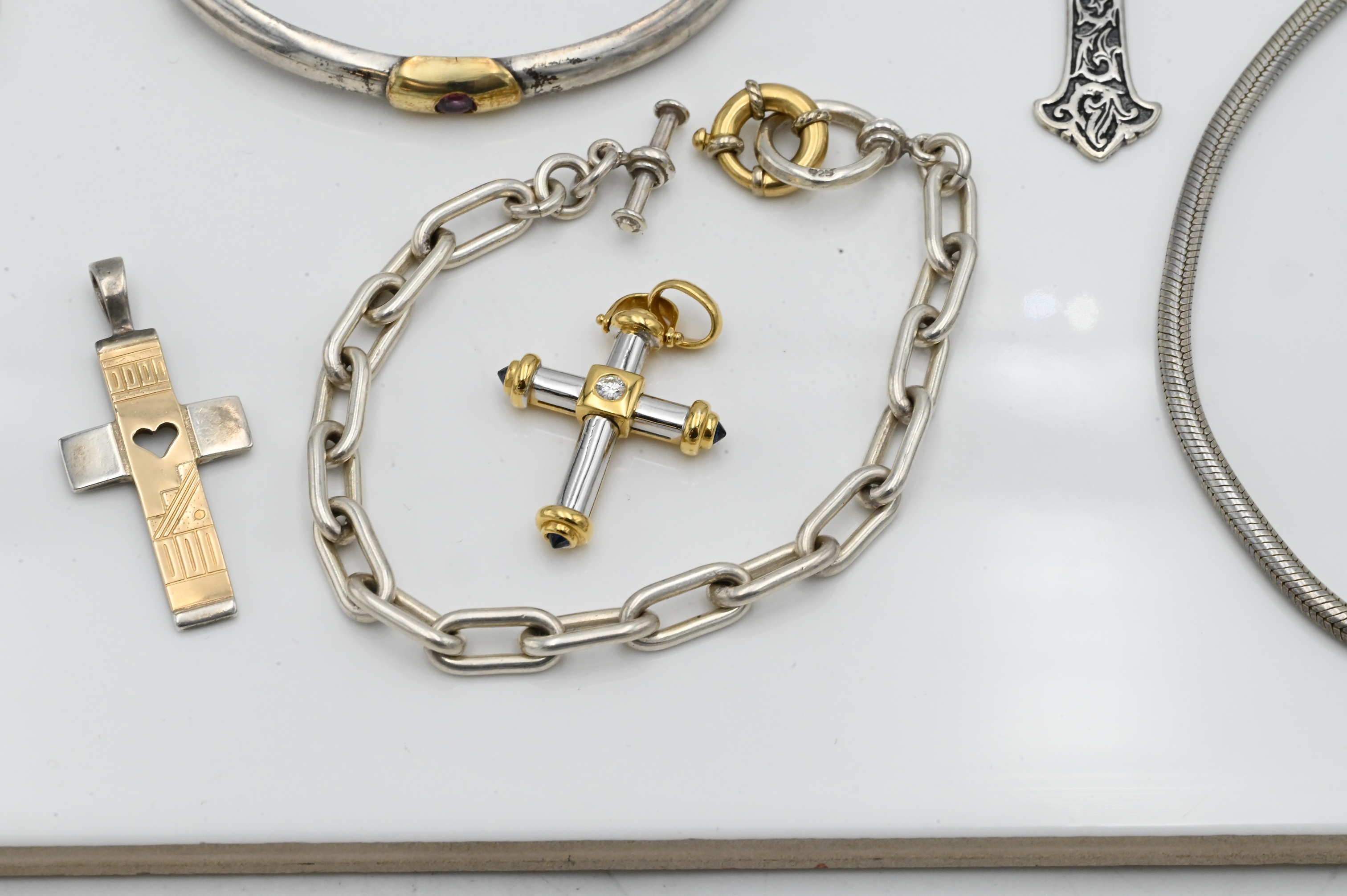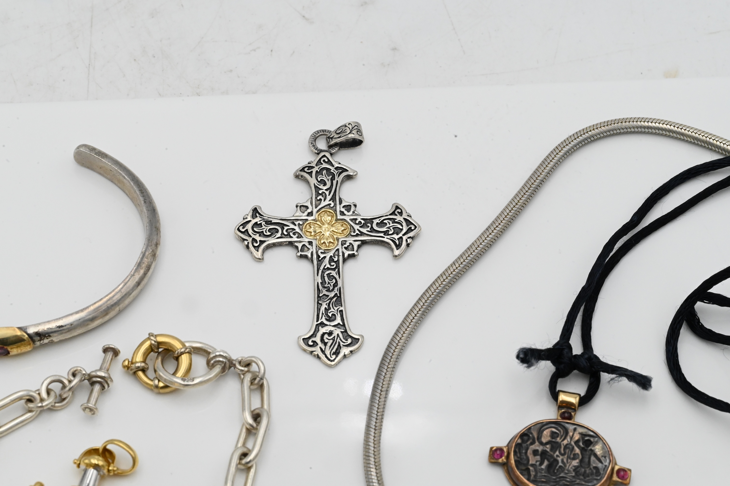 Lot 78: Group of Silver Mounted with Gold Jewelry