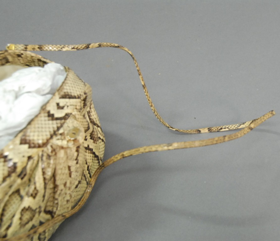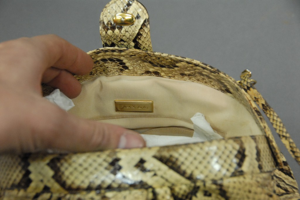 Judith Leiber snake skin evening bag purse. height 6in. width 11in.