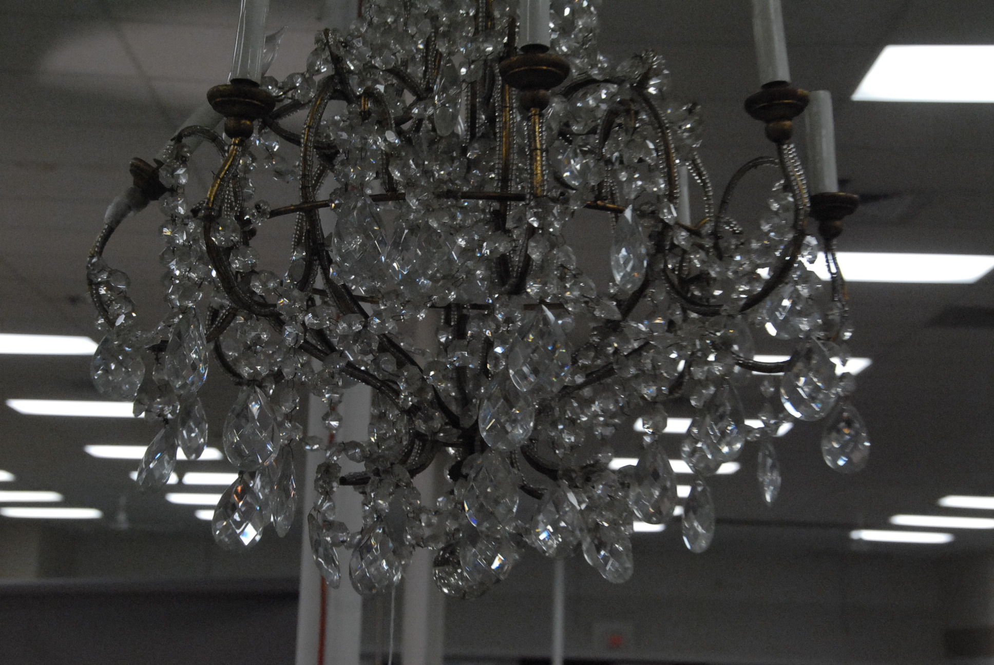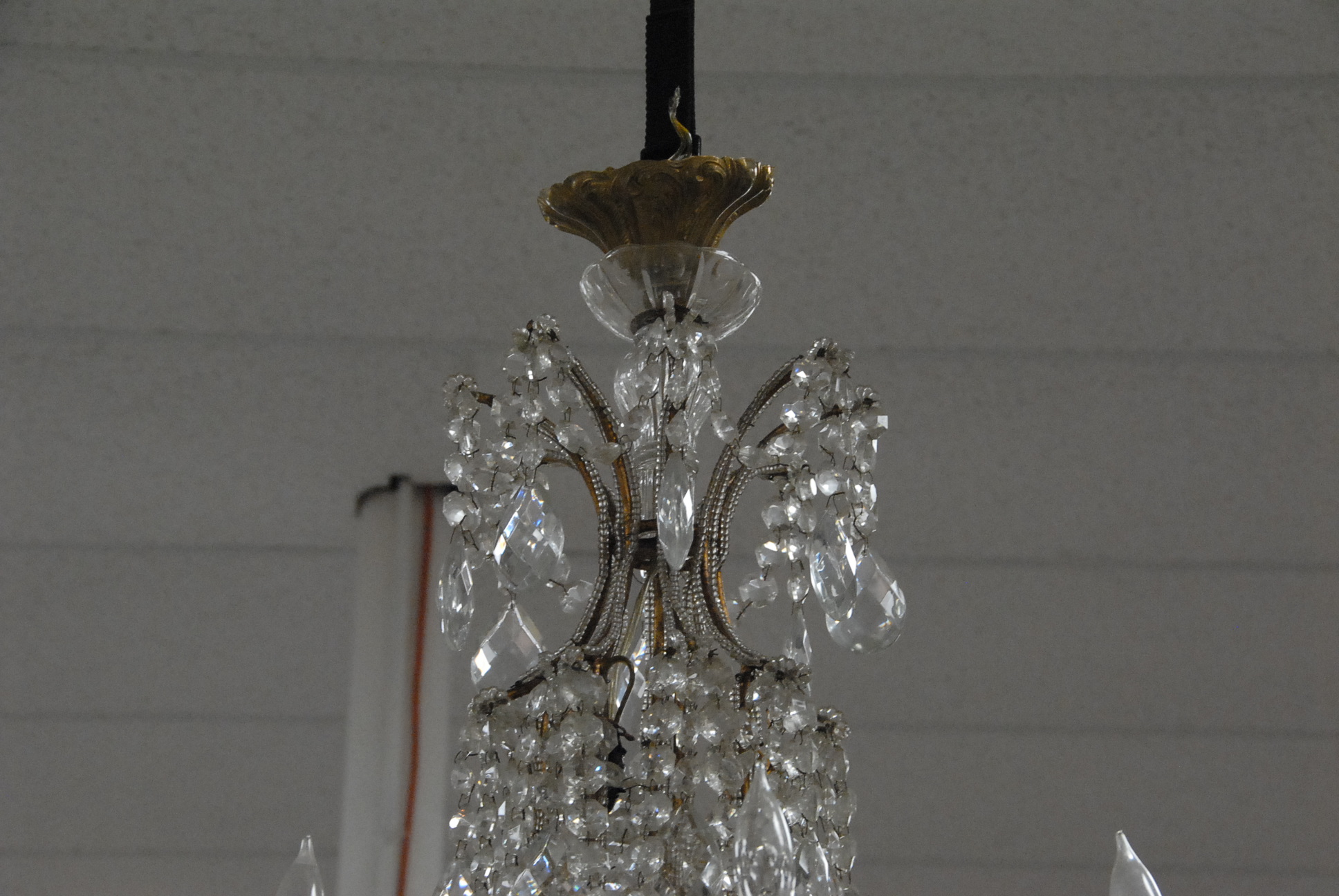 Large eight light crystal hanging chandelier with multiple prisms, ht. 40.