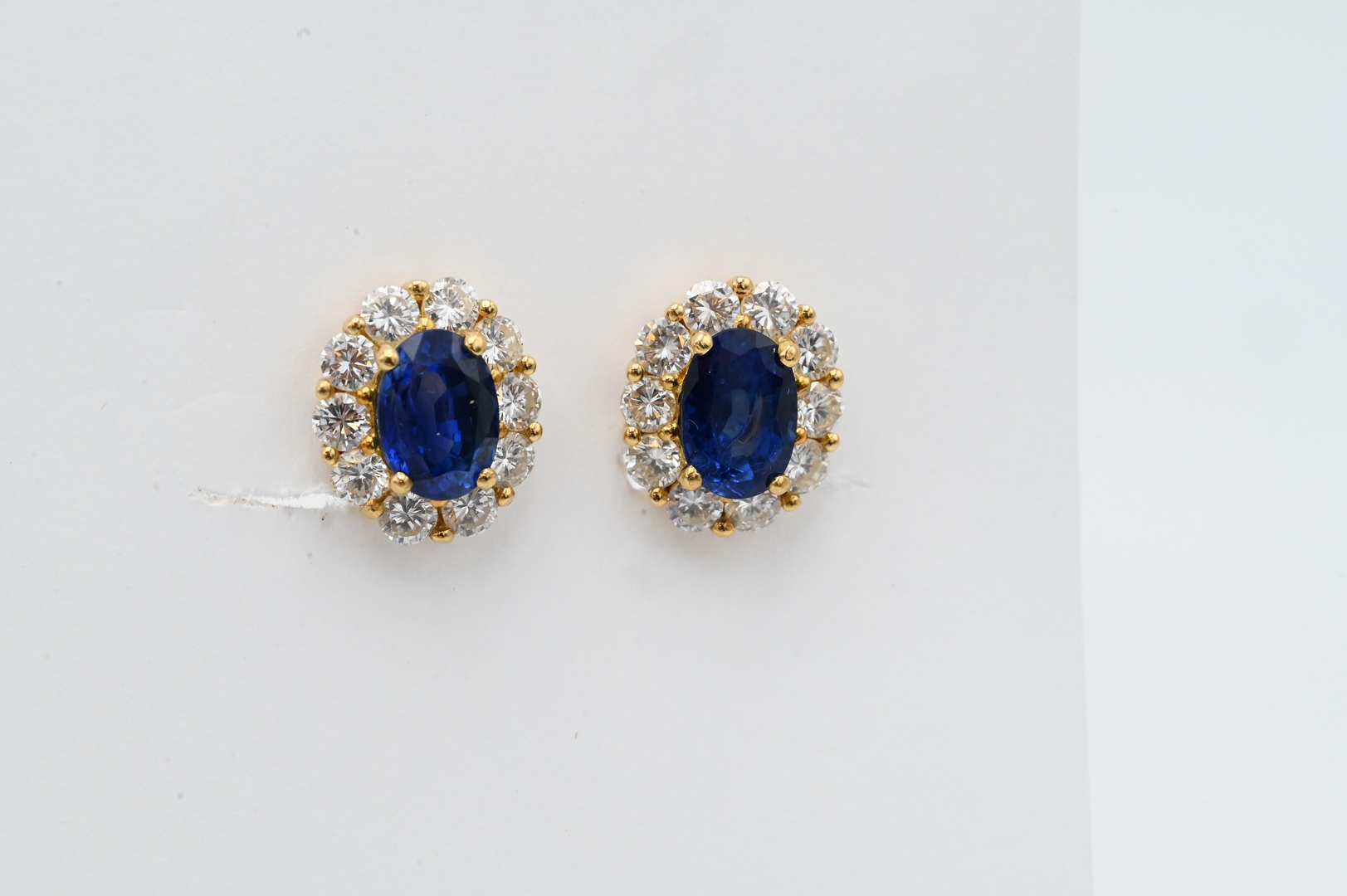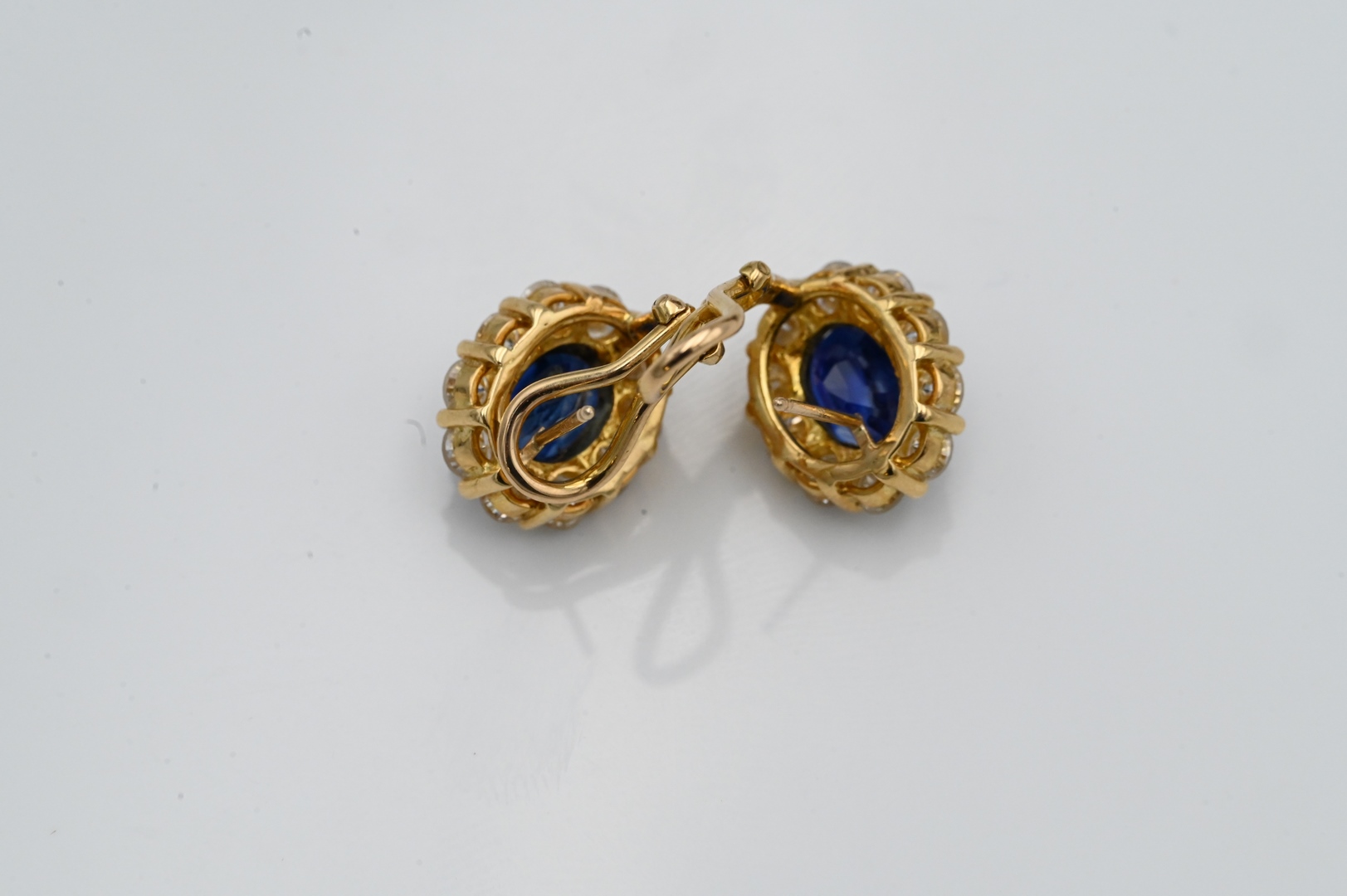 Pair of 18 Karat Yellow Gold Sapphire and Diamond Earrings