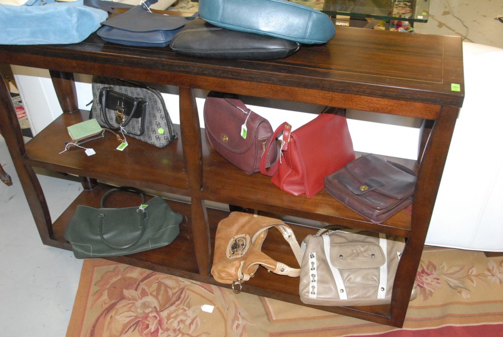Thomasville Lumine contemporary hall / sofa table with shelves. Lg. 54in. dp. 14in. ht. 34in.