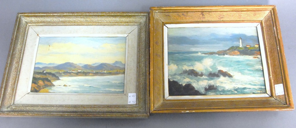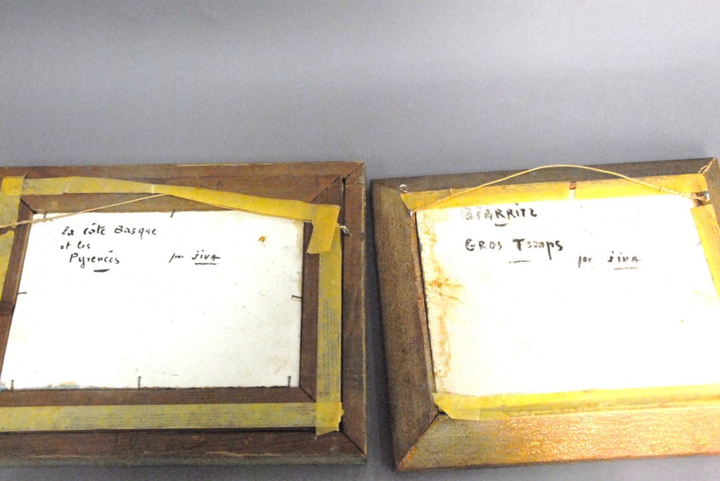 Jiva LA COTE BASQUE OF LES PYIENCES oil on board signed lower right Jiva BIARRITZ GROS TEMPS oil on board signed lower left Jiva – 6 1/2 x 9 1/2