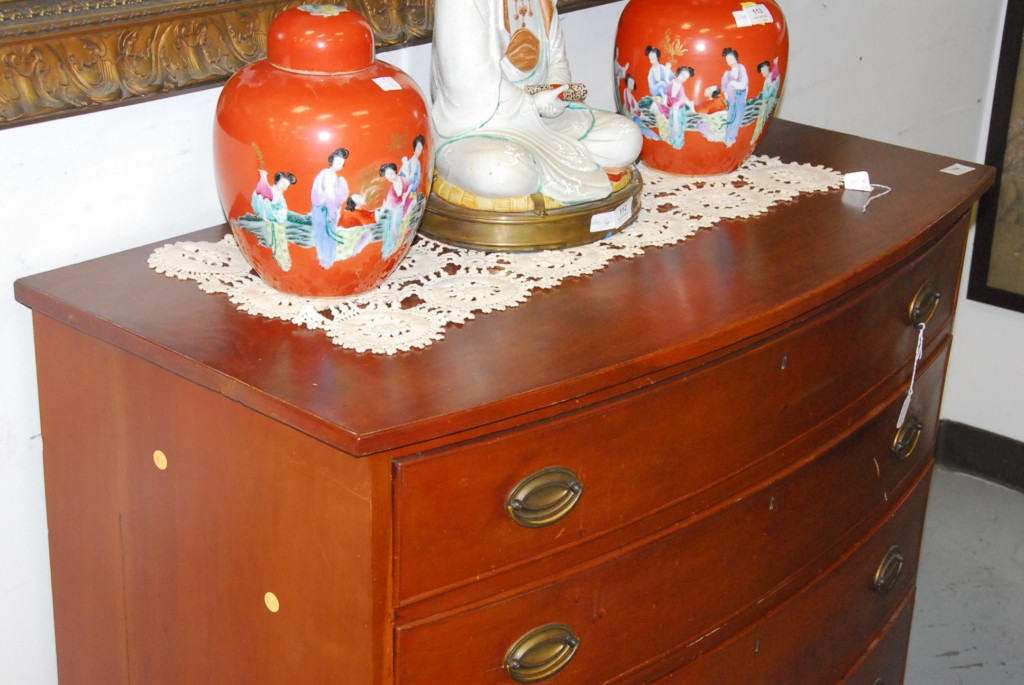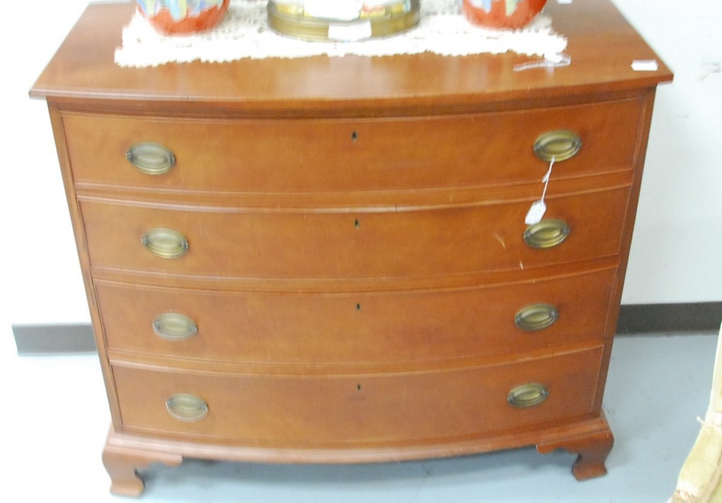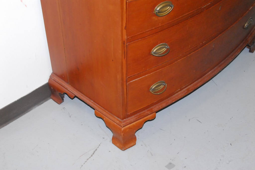 Chippendale cherry bow front chest of four drawers set on ogee feet, late 18th century. – ht. 36in. wd. 42in.