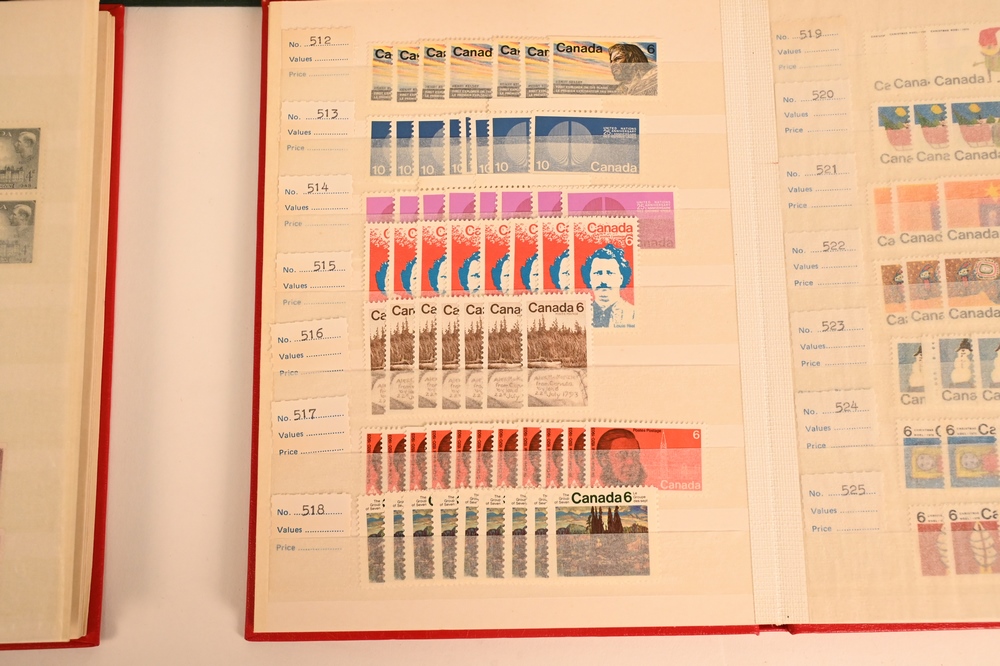 Lot 79: Grouping of Stock Books, containing old and new mint and used Canada stamps, along with one stock book of Bermuda.