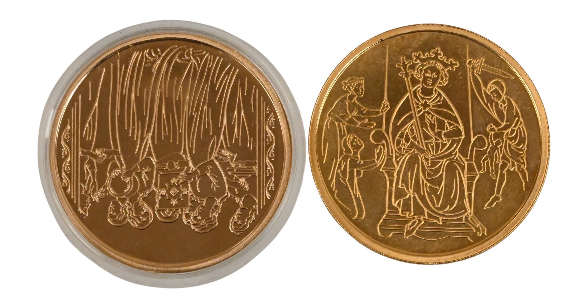 Lot 79: Two .9 State of Israel Gold Coins consisting of two 1996 Miriam and the Women