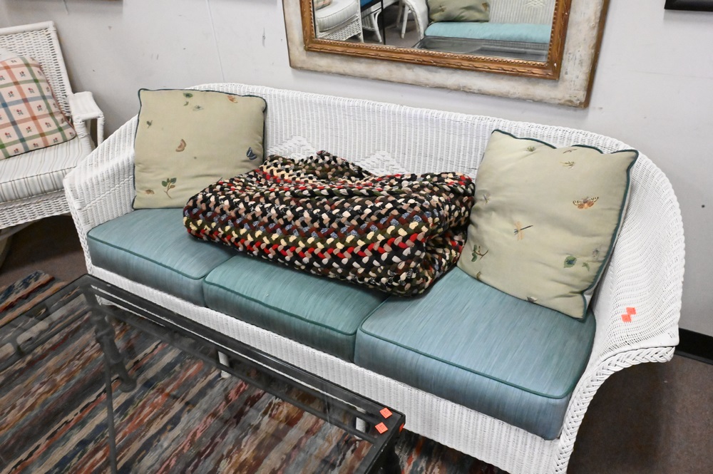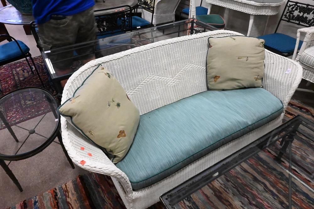 Two Piece Wicker Lot, to include sofa, loveseat, both near matching, width 62 inches and 73 1/2 inches.