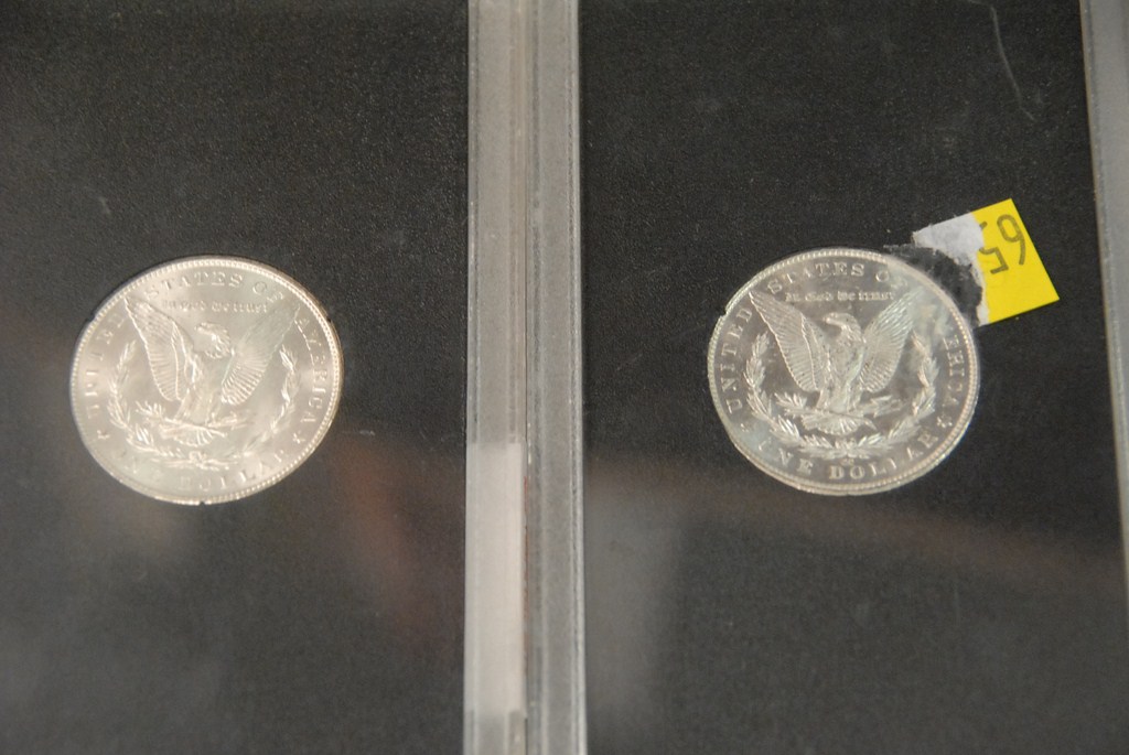 Two silver dollars 1882-CC GSA Holder and 1883-CC GSA Holder.