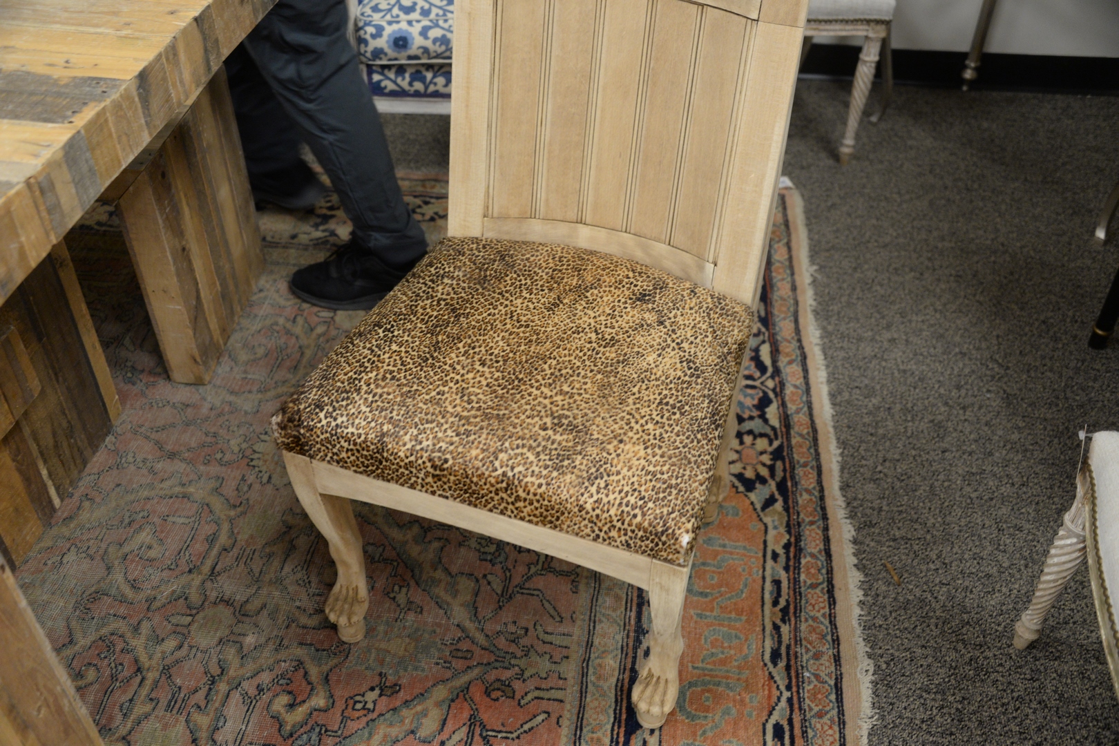 Pair of Side Chairs having hyde upholstered seats, height 35 1/2 inches, length 20 inches.
