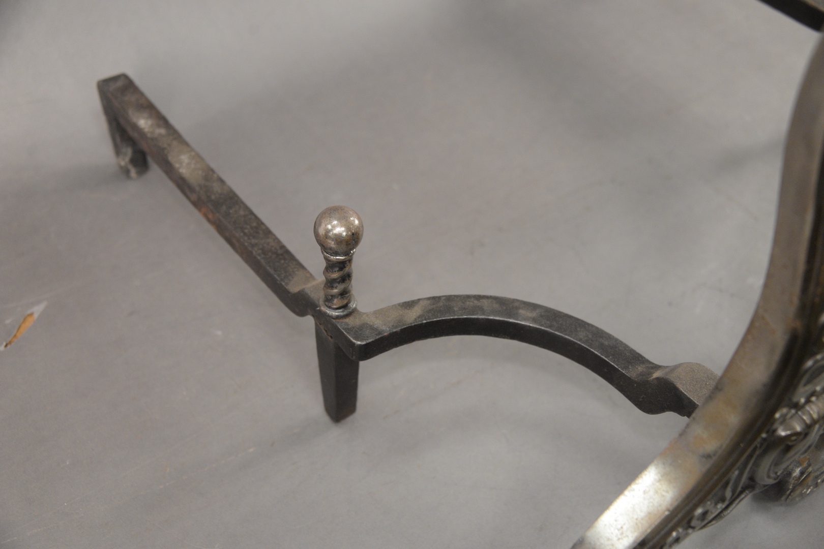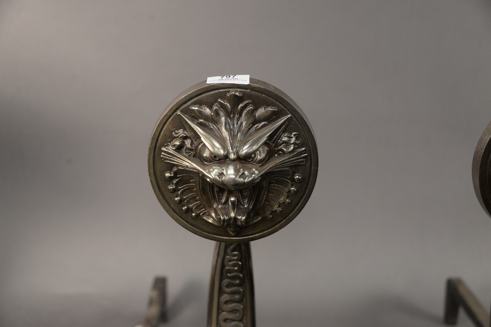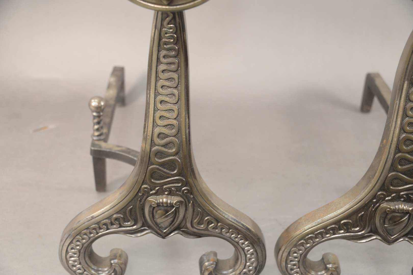 Pair of Iron Andirons with Lion Faces, height 24 inches.