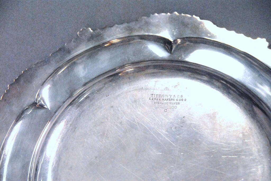 Lot 798: Pair of Tiffany & Co. service plates with gardrooned borders and family crest of Vanderbilts marked Tiffany & Co. Makers.dia. 10…