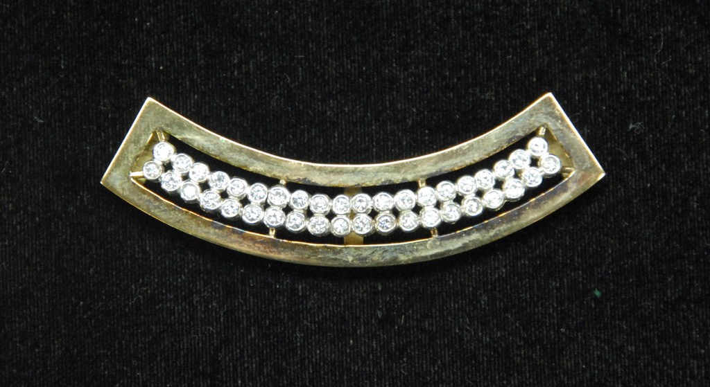 14K gold and platinum pendant, crescent shaped set with four diamonds. 9.9 grams