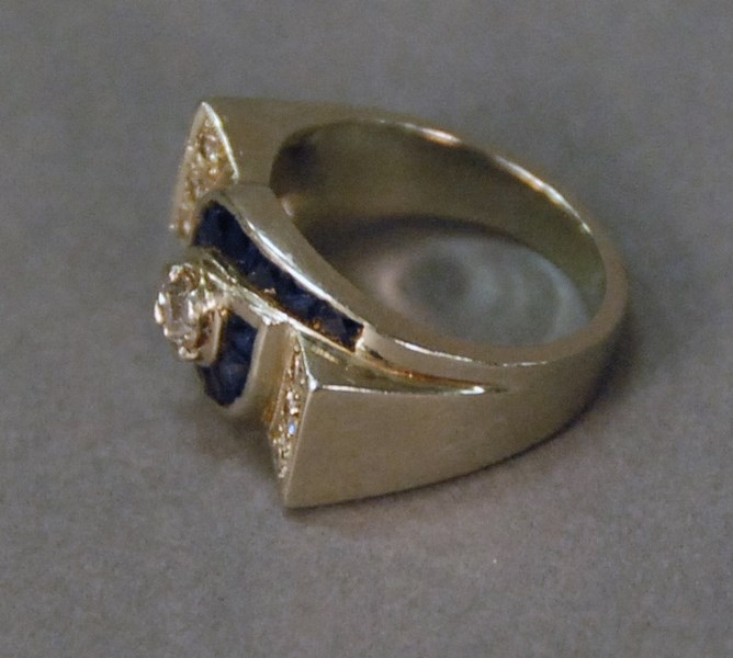 18K white gold ring set with diamonds and sapphires. size 6 1/4 10.6 grams