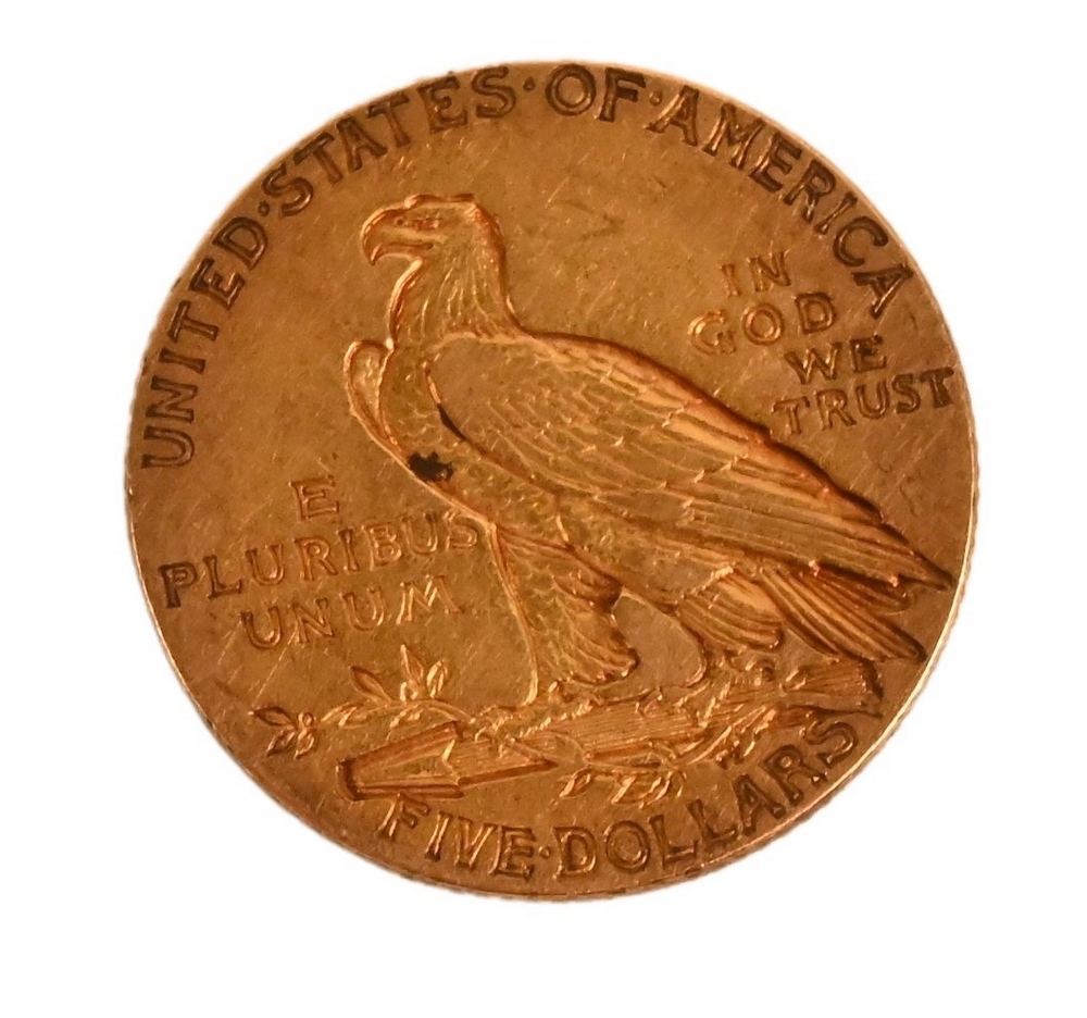 Lot 8: 1912 Indian Five Dollar Gold Coin.