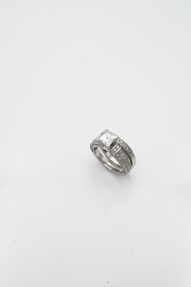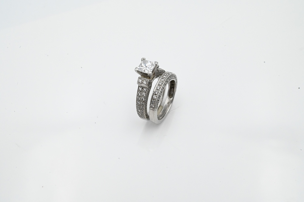 Lot 8: Diamond Engagement Ring, 1.02 carat with matching diamond band, GIA report, square modified brilliant, 5.52 x 5.47 x 4.02 millimeter…