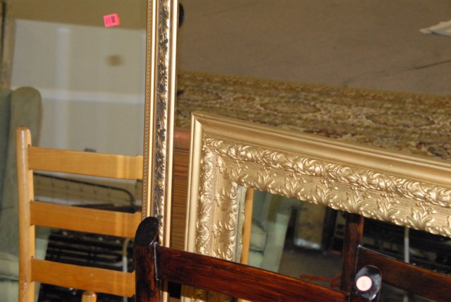 Group lot to include 2 gold framed mirrors and 2 ladder back chairs